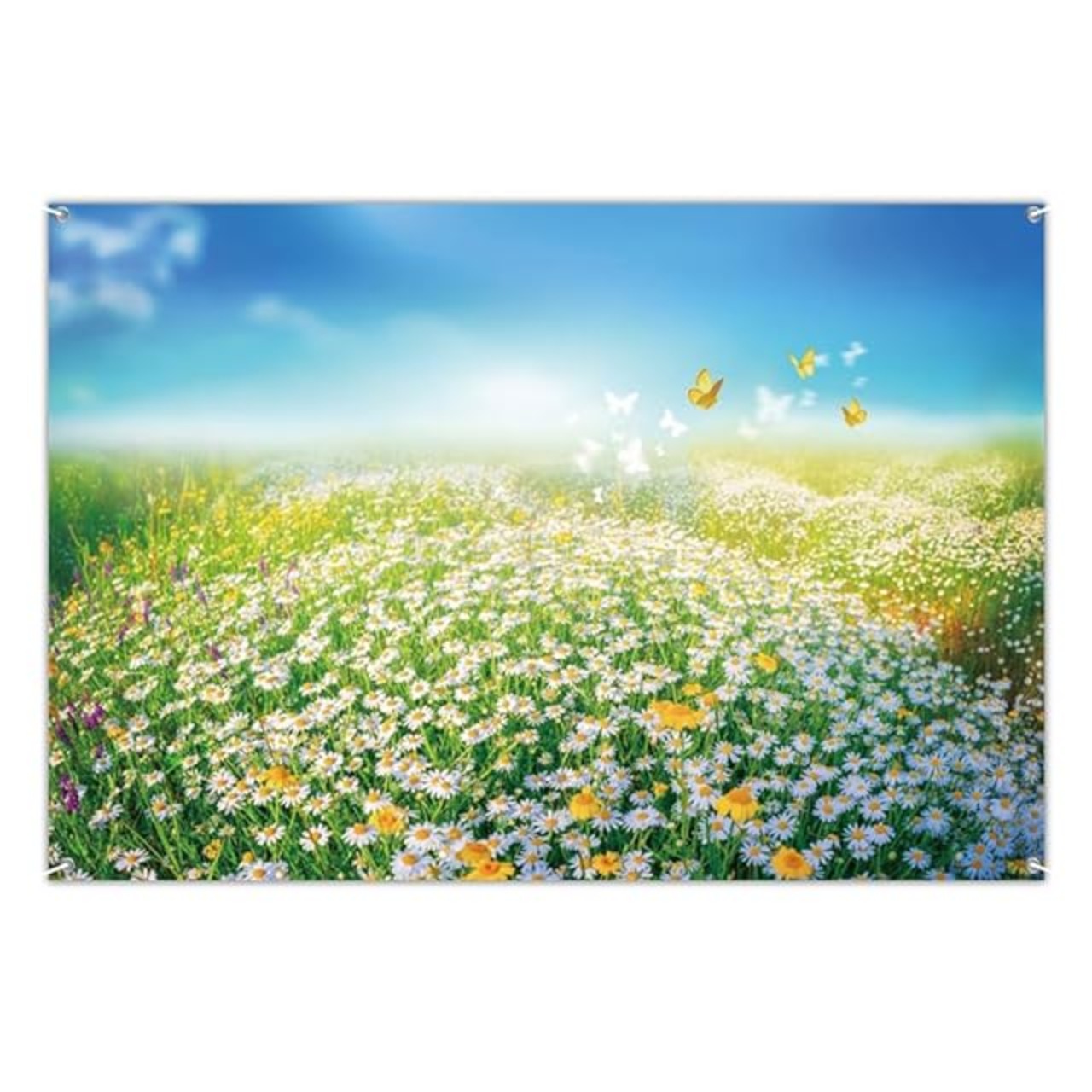 Qinunipoto 背景布 花柄 菊の花 青空 パーティー飾り 記念写真 2.2x1.5m 多機能 壁掛け タペストリー リモートビデオバックグラウンド 室外活動バナー ポリエステル製