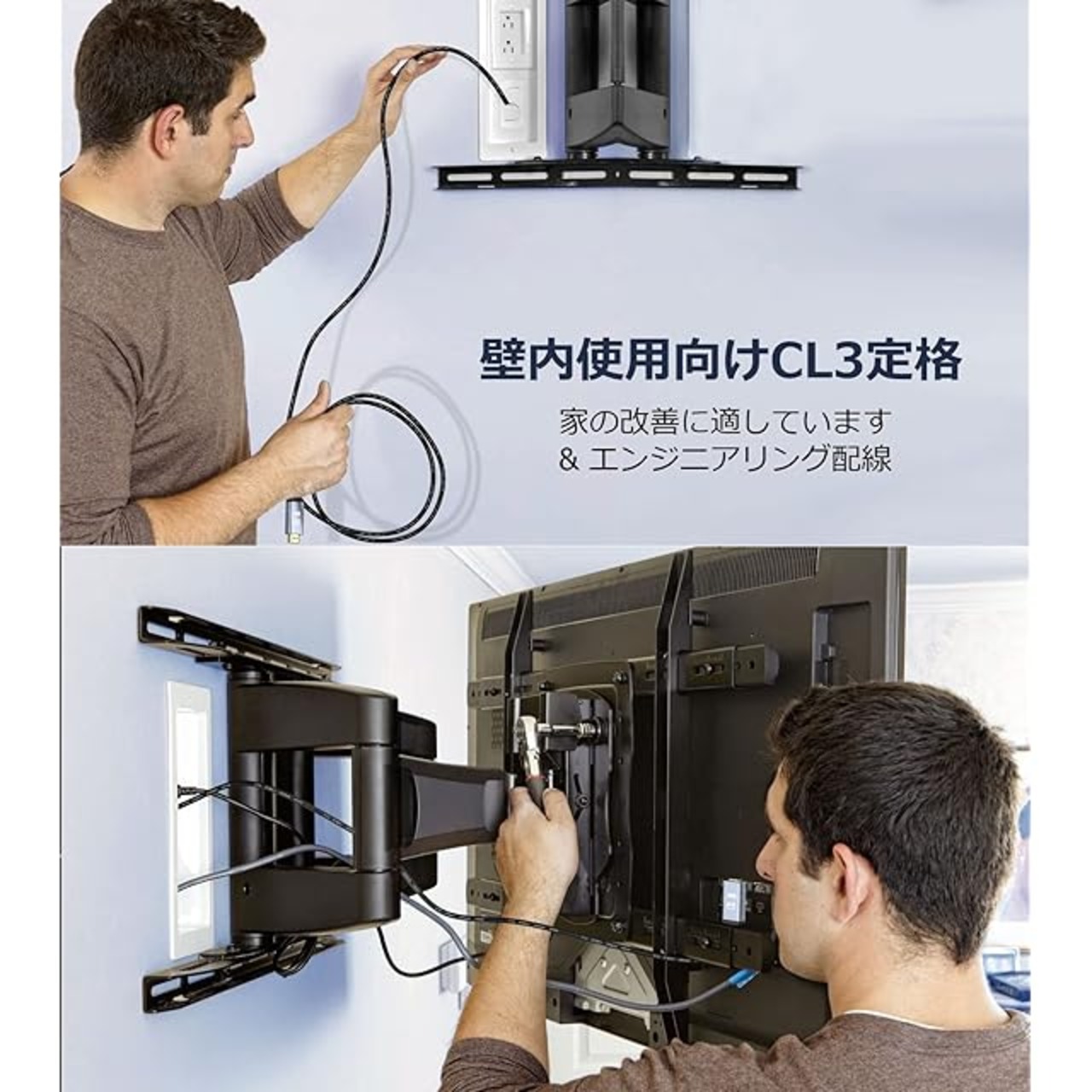 【CL3規格】: 難燃性と丈夫なプラスチック シースを備えた壁内設置用の CL3 定格 HDMI ケーブルです。