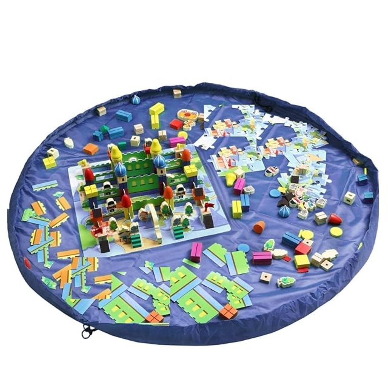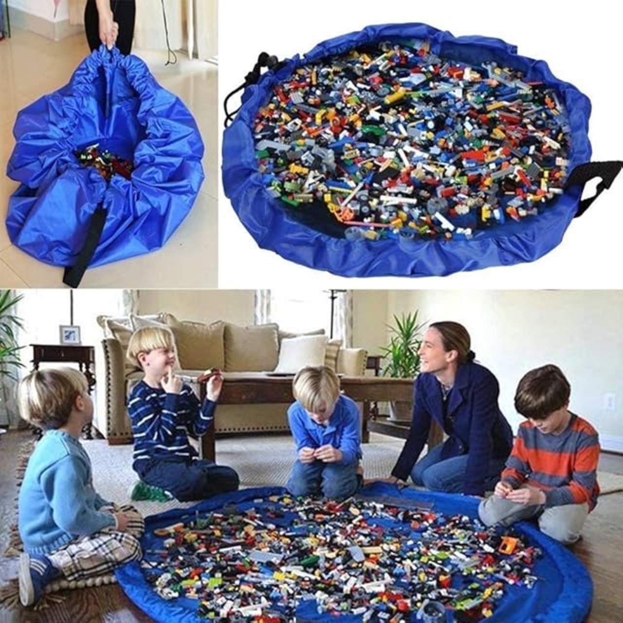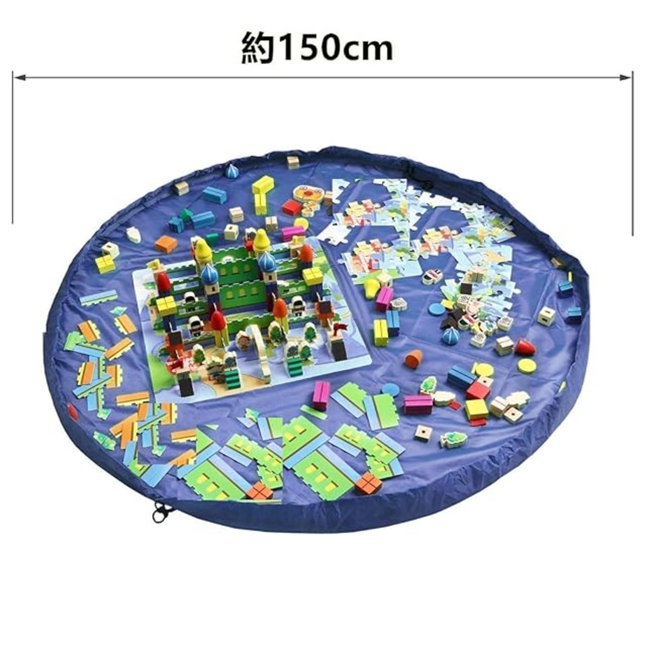 siawadeky おもちゃ収納バッグ 子ども プレイマット 積み木 お片付け簡単 特大マット 直径150cm 折り畳みで便利 収納用品 自宅&外遊び (ブルー)