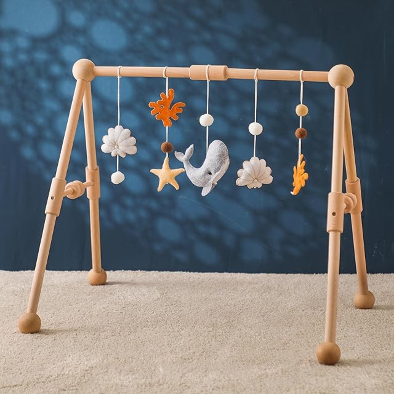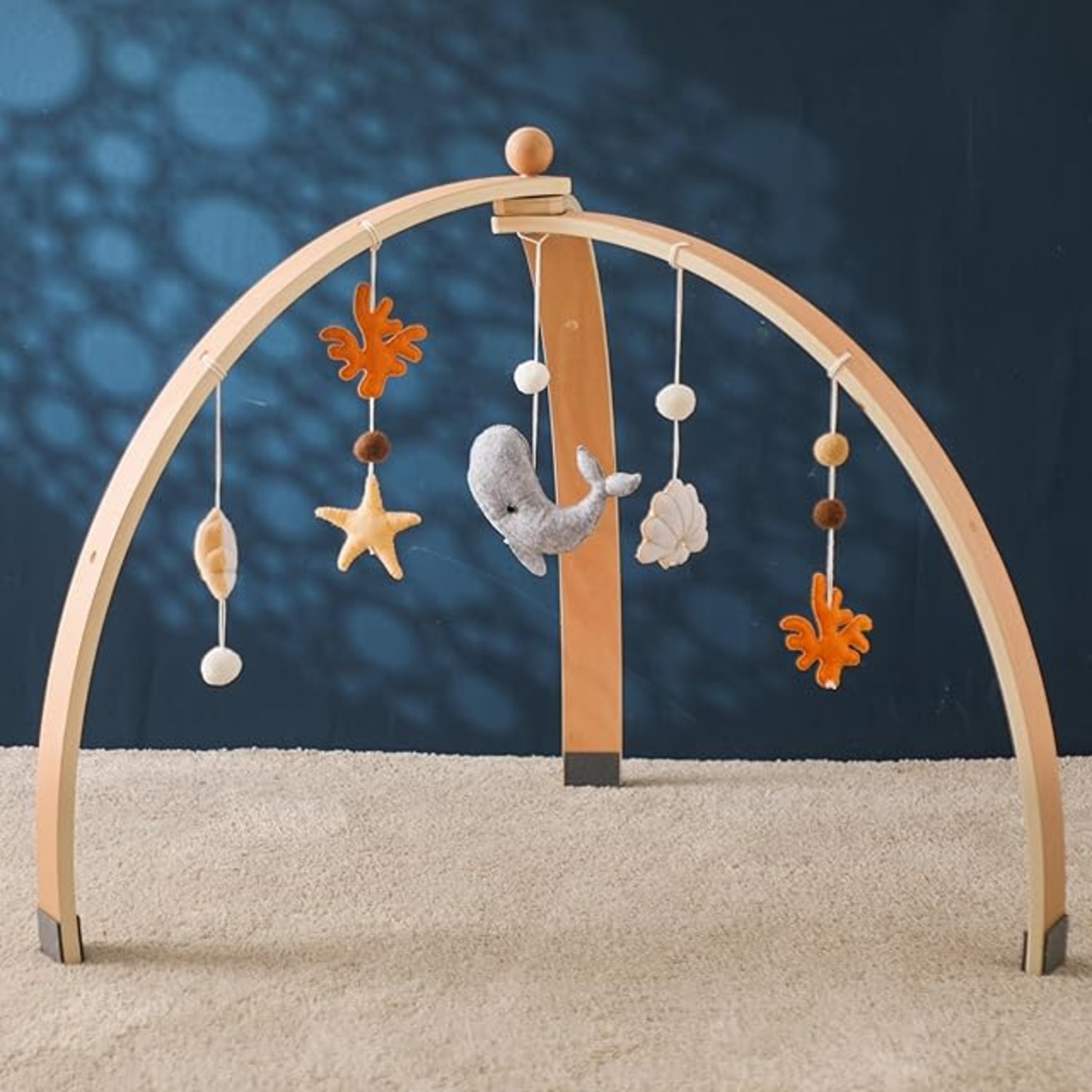 let's make おもちゃ 5個セット 木製 ベビージム用 ベビーカーおもちゃ ラトル ガラガラ お出かけ ベル付き ベッドぶら下げ プレイジム玩具 知育玩具 飾り 赤ちゃん 新生児 出産祝い(海のおもちゃ1-フェルト)