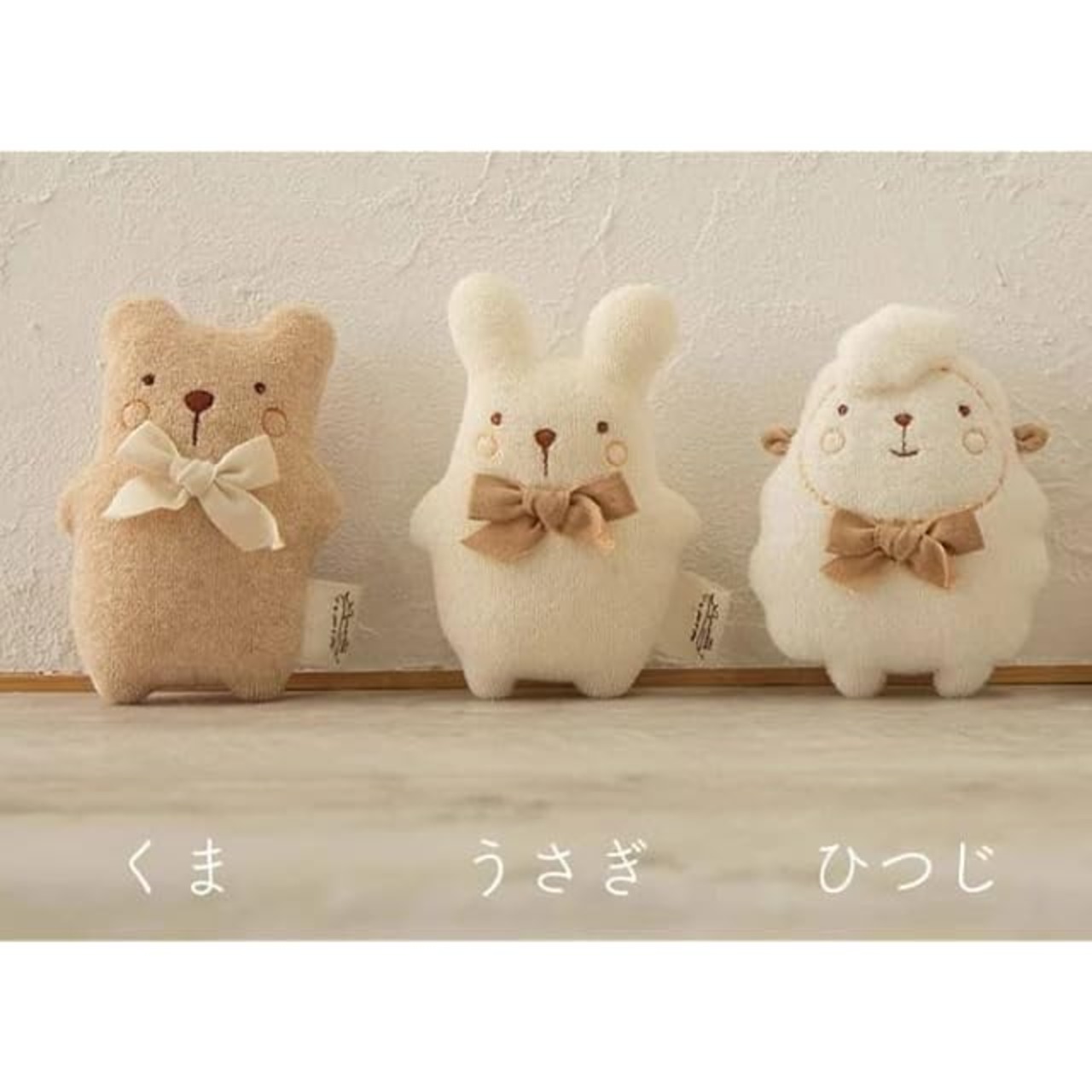 My little tailor/Organic 日本製 ファーストトイ 「ぬいぐるみ型にぎにぎ。 鈴入り どうぶつ村(リボン)/くま・うさぎ・ひつじ サイズ:11-12cm」 オーガニックコットン100%(無農薬有機栽培綿)/鈴入り、ガラガラ、ラトル、にぎにぎ、あむあむ (ひつじ(オフホワイト))
