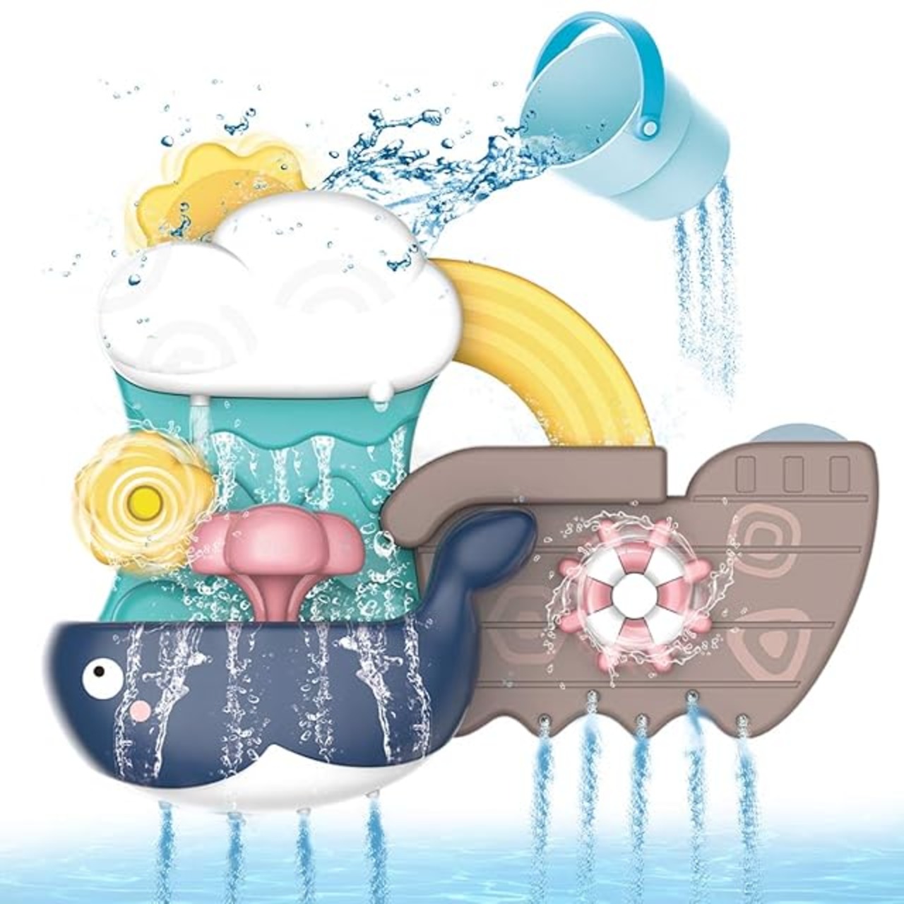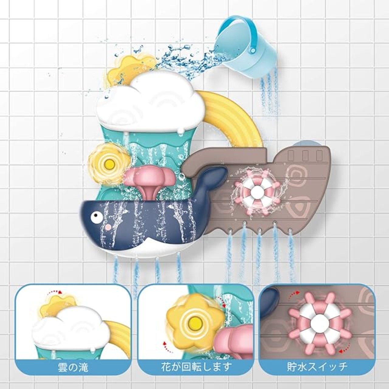 【かわいい形】カラフルな配色とかわいい漫画の要素は、水の特徴は、雲、水しぶきのクジラ、小さな船でかわいい形をしています。そこに水が注がれると、歯車が回り始め、水の小さなコンセントから水が流れ出します。子供様は浴槽の中に小さな美しい滝を見ることができます。なんてすごい!