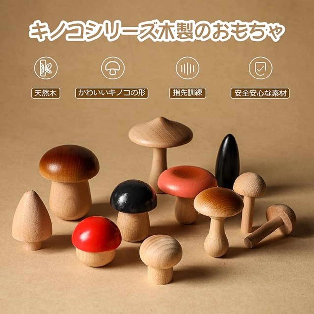 let's make 積み木 木製おもちゃ キノコシリーズ木製のおもちゃ 木製玩具 知育玩具 子供 幼児 おもちゃ 誕生日 保育園 入園祝い 贈り物 出産祝い ギフト 11点セット ギフト包装