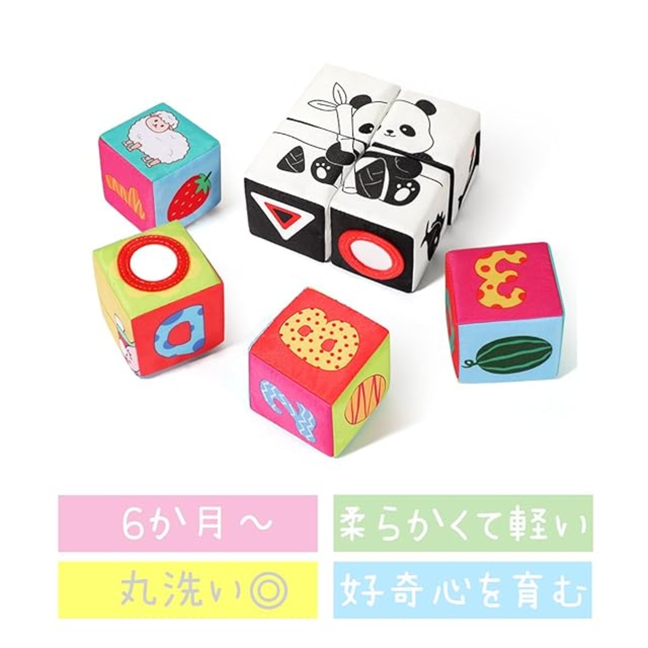【商品仕様】●セット内容:柔らかブロックX4 ●商品サイズ:6*6*6cm ●対象年齢:6か月~●材質:ポリエステル