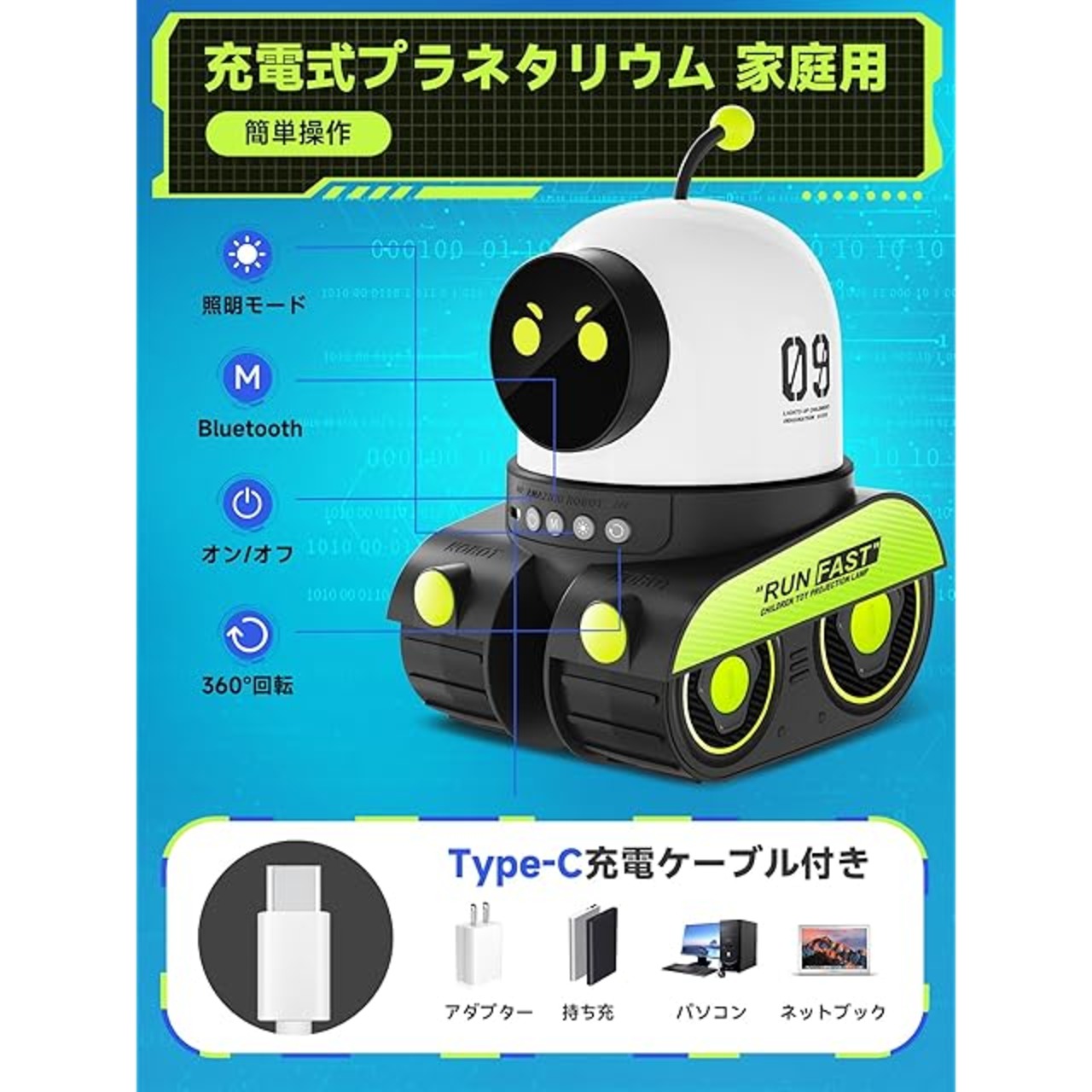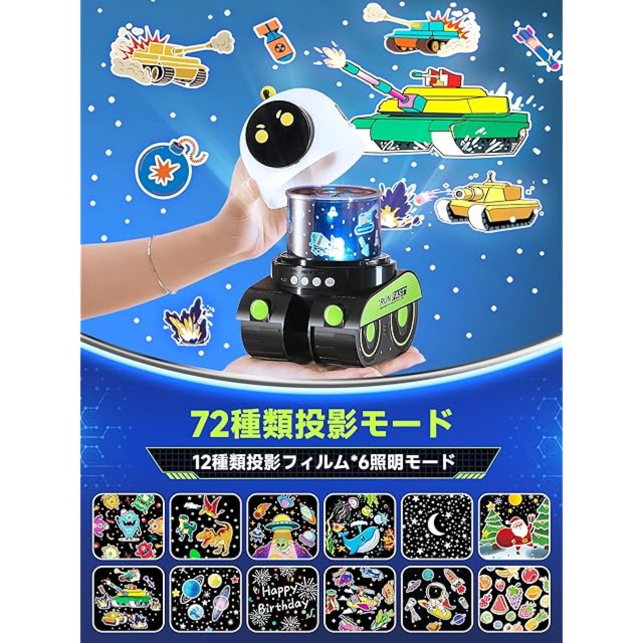kufire プラネタリウム 家庭用 子供、12種類投影フィルム付き、Bluetoothスピーカー付きの寝かしつけ用ナイトライト、6照明モードの間接照明 寝室、出産祝い 男の子、誕生日プレゼント、女の子 赤ちゃん 誕プレ、クリスマス、贈り物、面白い【ロボットカー】