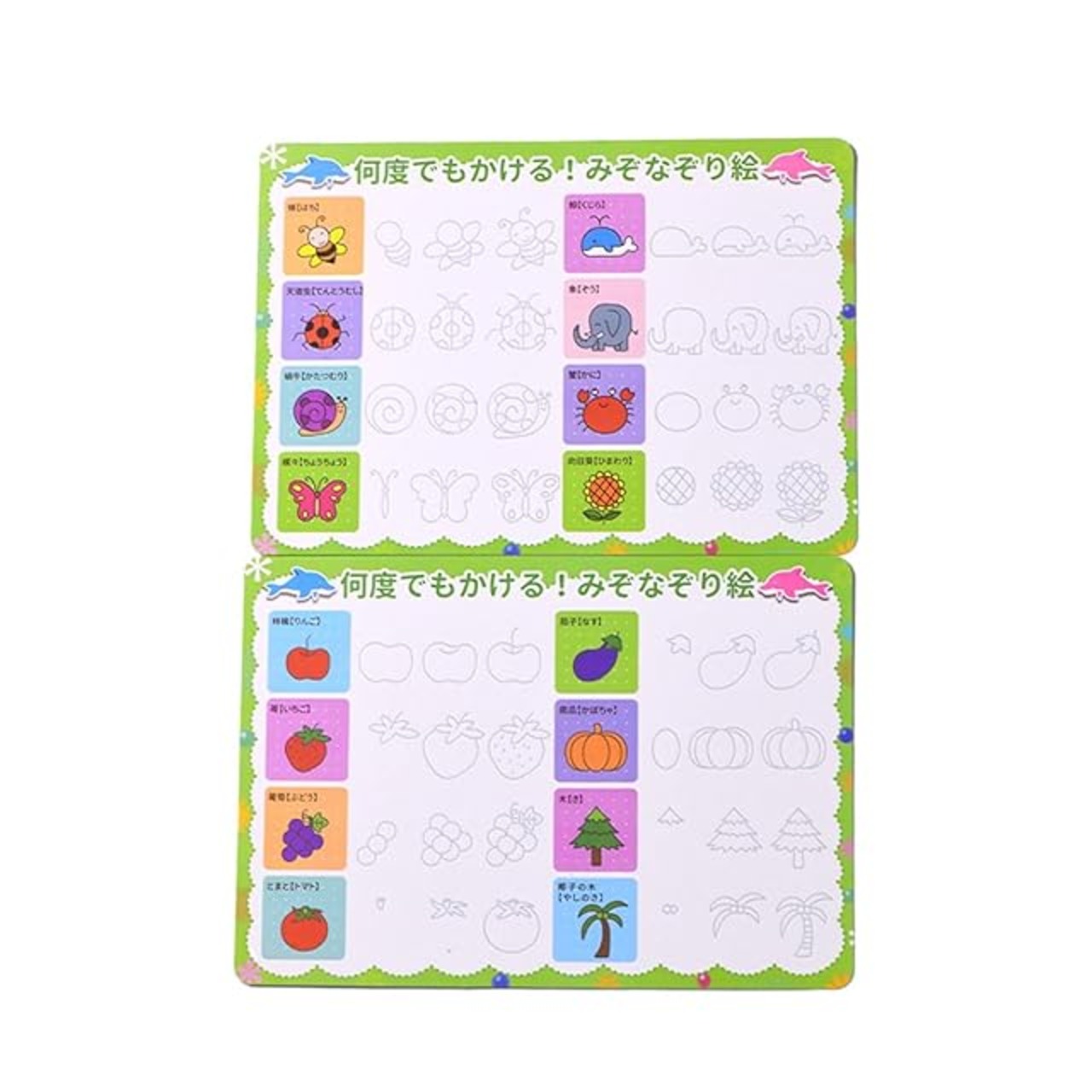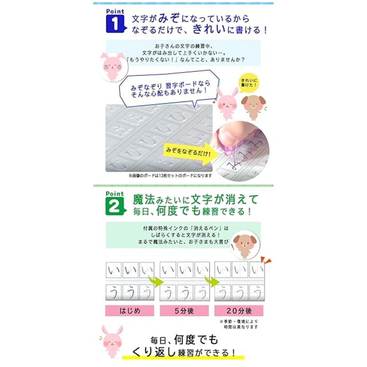 【みぞなぞり練習ボード】はじめてのあいうえお 何度でもできる! くせのないきれいな字になるひらがなれんしゅうちょう すうじ練習ドリルみぞなぞり絵 5枚セット