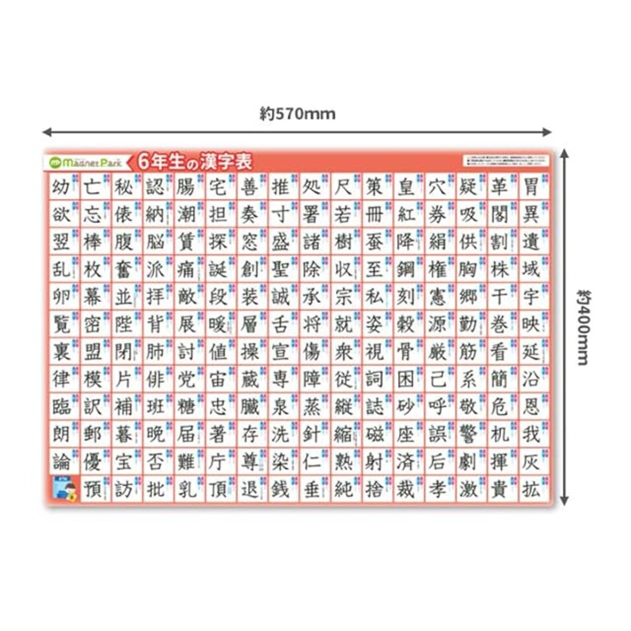 小学6年生の漢字表ポスター【お風呂ポスター】マグネットシート製