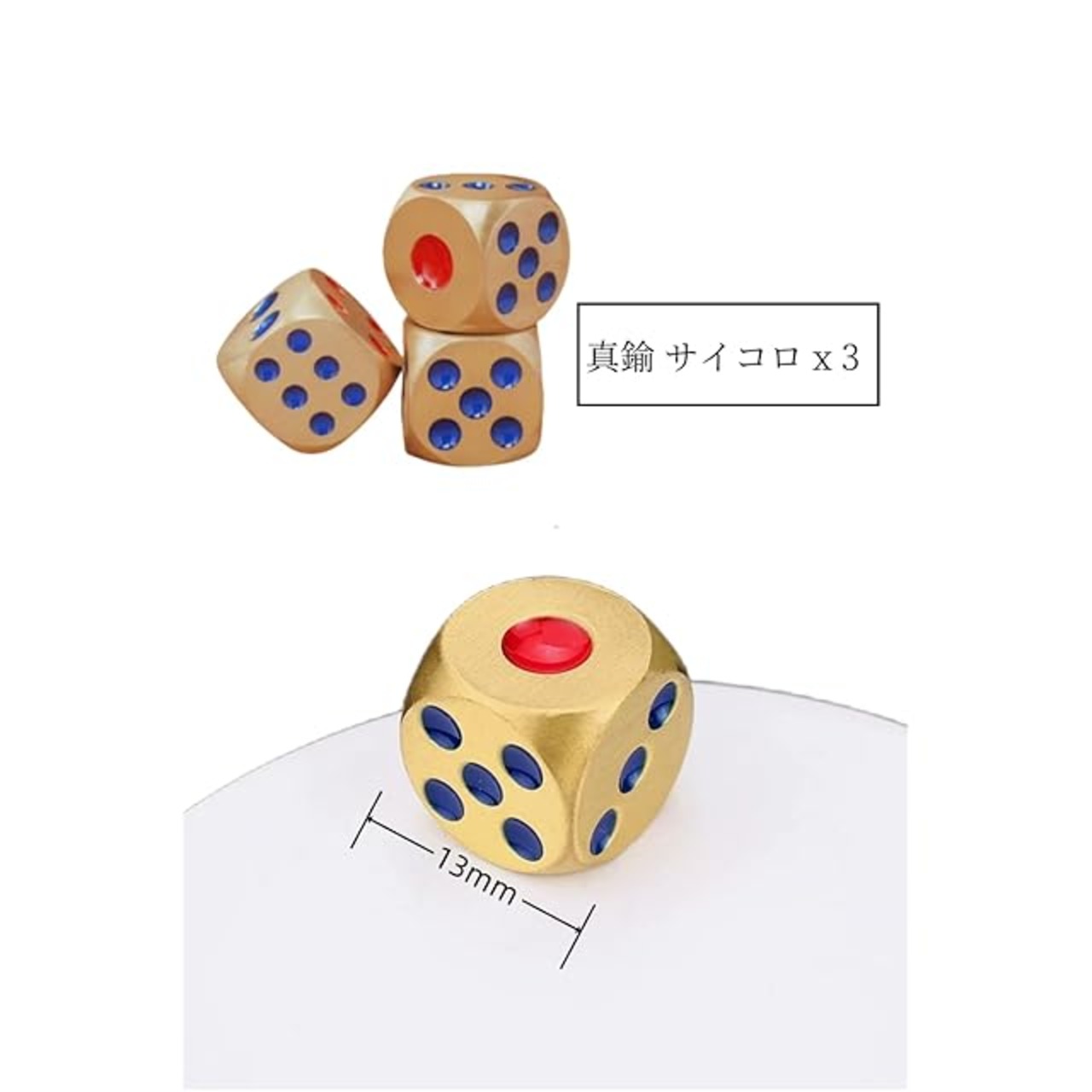 【商品仕様】真鍮 ダイス x 3、真鍮 ダイス :13mm x 13mm x 13mm 、 カラー: ゴールド