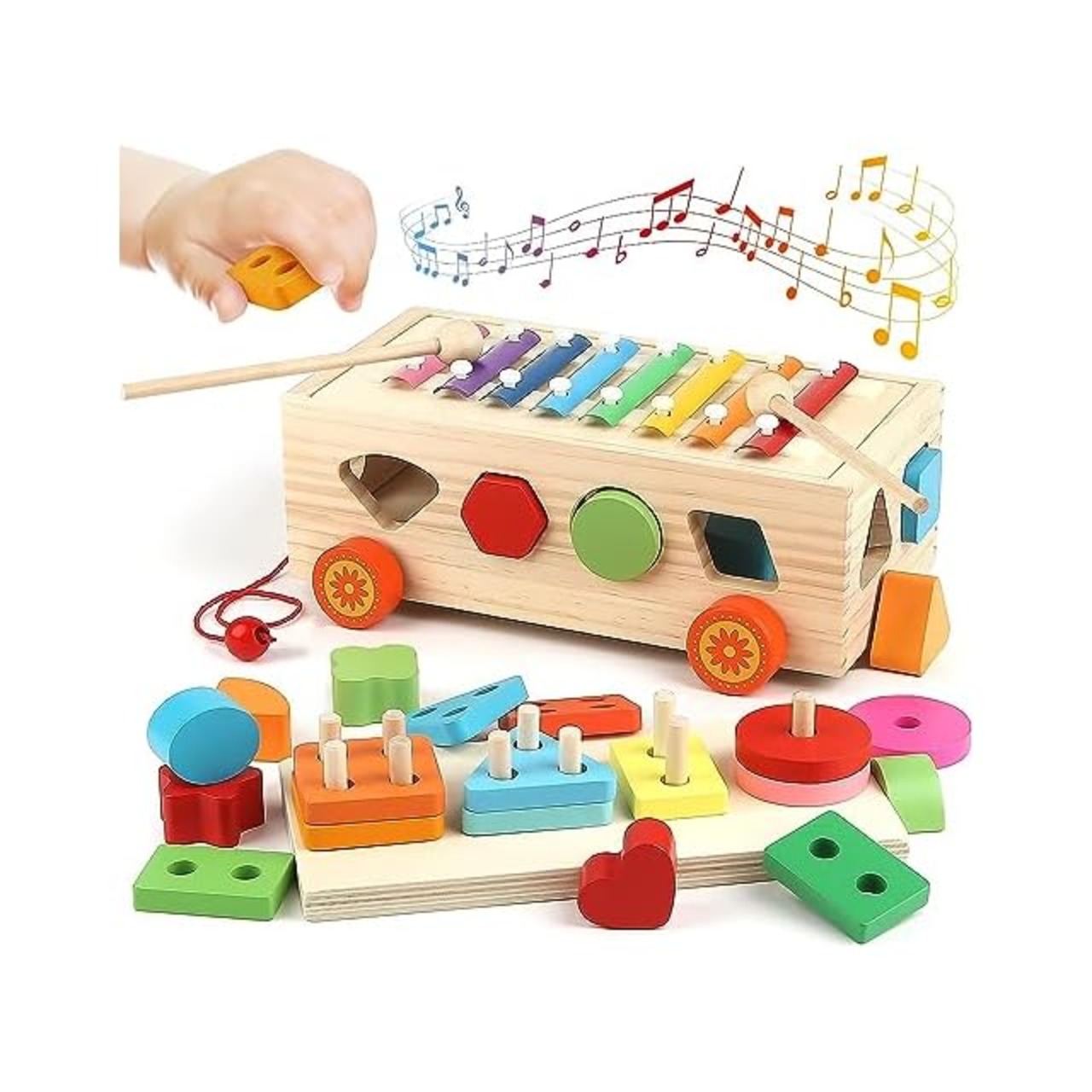 木のおもちゃ:1、2、3、4歳の男の子と女の子向けの積み木に加えて、このモンテッソーリおもちゃには木琴も装備されており、赤ちゃんがリズムを学び、好奇心を刺激することができます。多機能な積み木おもちゃ。