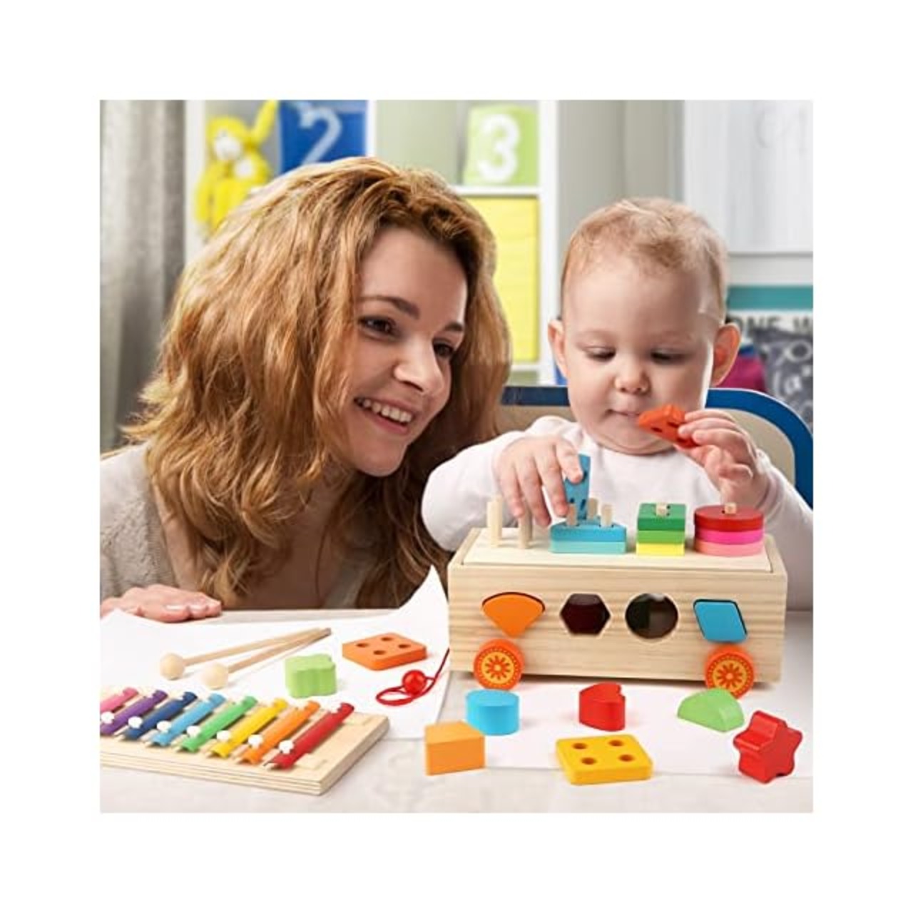 1 2 3 歳 おもちゃ:この木のおもちゃは、幼児が色や形を認識するのに役立ち、木琴のおもちゃは聴覚と音楽の知覚を改善することもでき、子供の思考力の発達に適しており、子供にとって素晴らしいモンテッソーリおもちゃです。