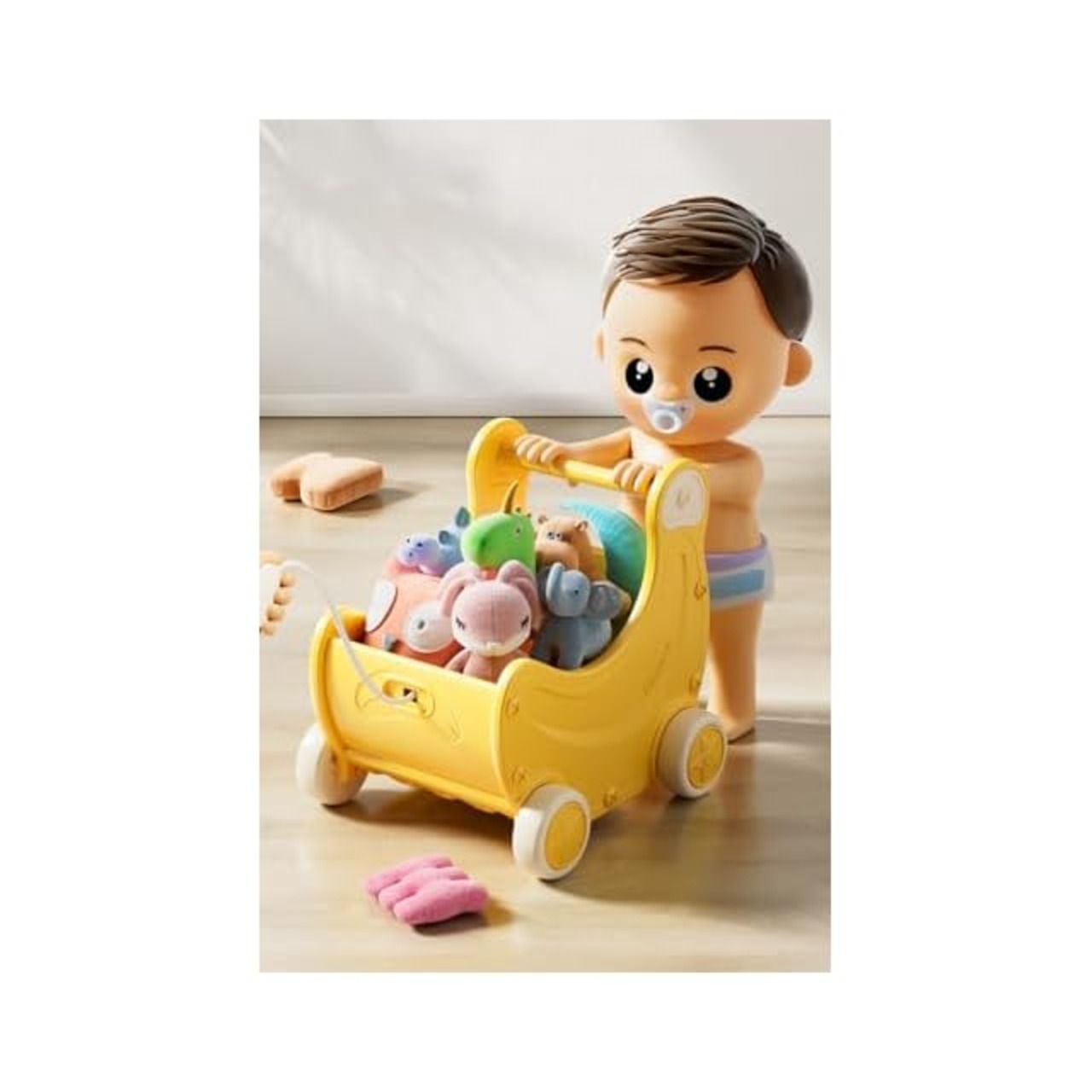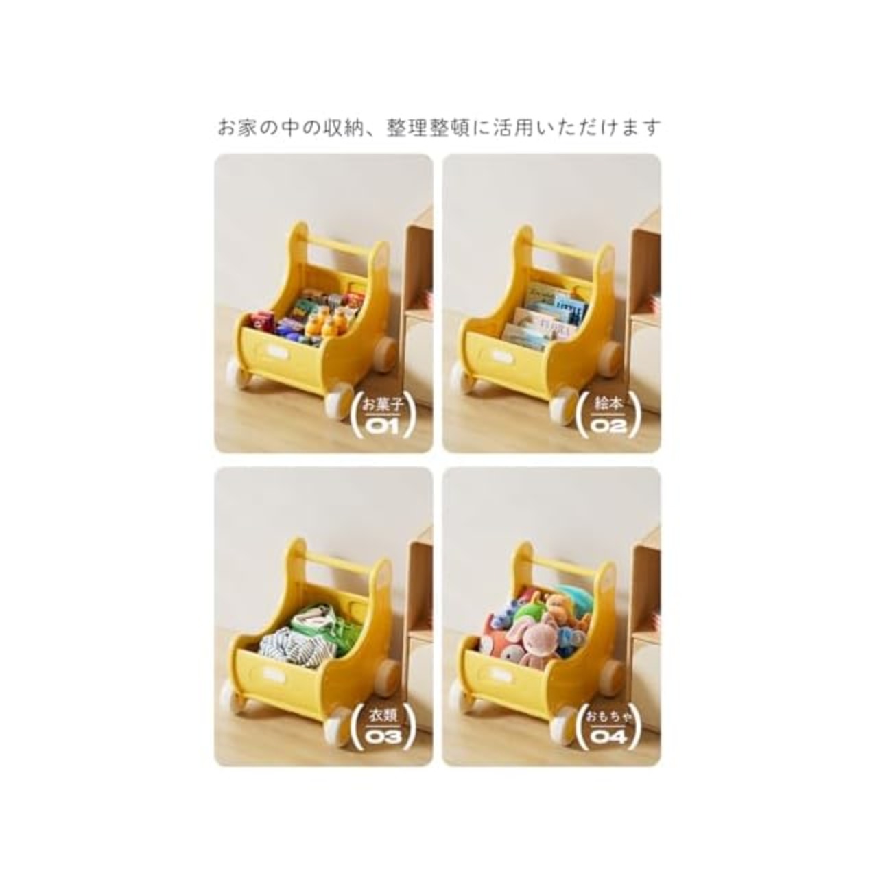 【大好きなおもちゃを積んで歩行練習】ごっこ遊びやお気に入りのおもちゃなどを入れて運んだり、つかまり歩きの練習用としても、屋内専用でおもちゃ箱としても使えます。タイヤは室内で遊んでもフローリングなどの床を傷つけません。
