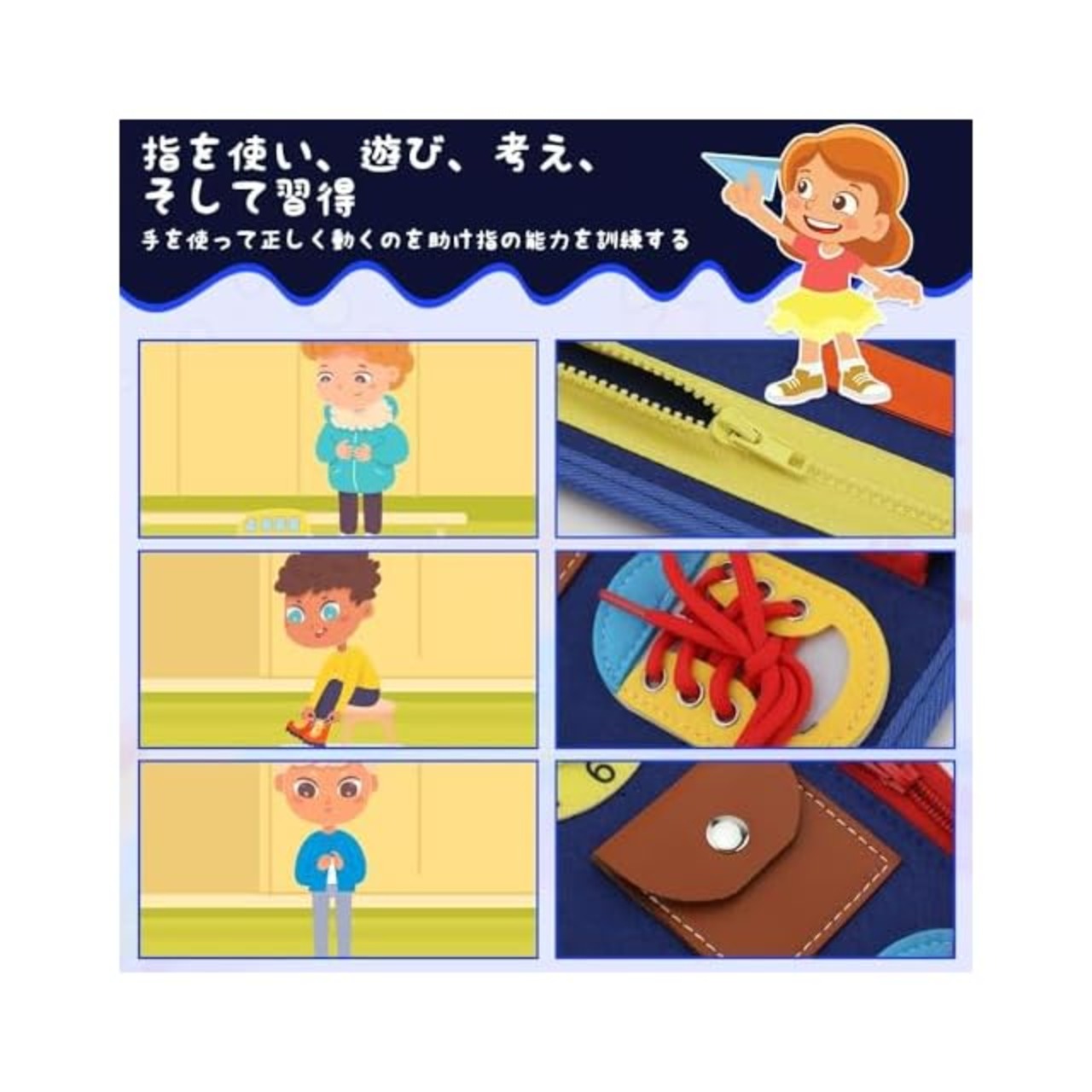 こどもが夢中になる知育おもちゃ:20種類のバラエティ豊かなボタン、バックル、ジッパーなどで遊べる、知育用玩具です。一般に洋服についている留め具をまとめてあるオモチャで、子供の知力、創造性を刺激し、能力の開発に役立ちます。