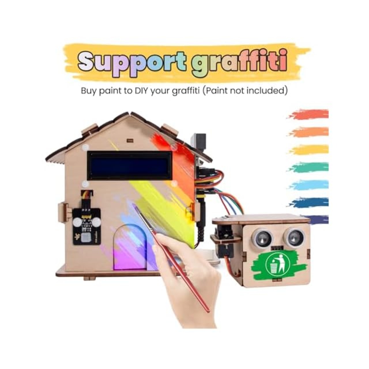 スマートでサウンド制御された機能: サウンド制御の照明、パスワード保護されたドア、温度/湿度監視、地震警報、モーション検出、自動ゴミ箱など、すべてが 1 つのキットにまとめられた未来的な体験をお楽しみください!