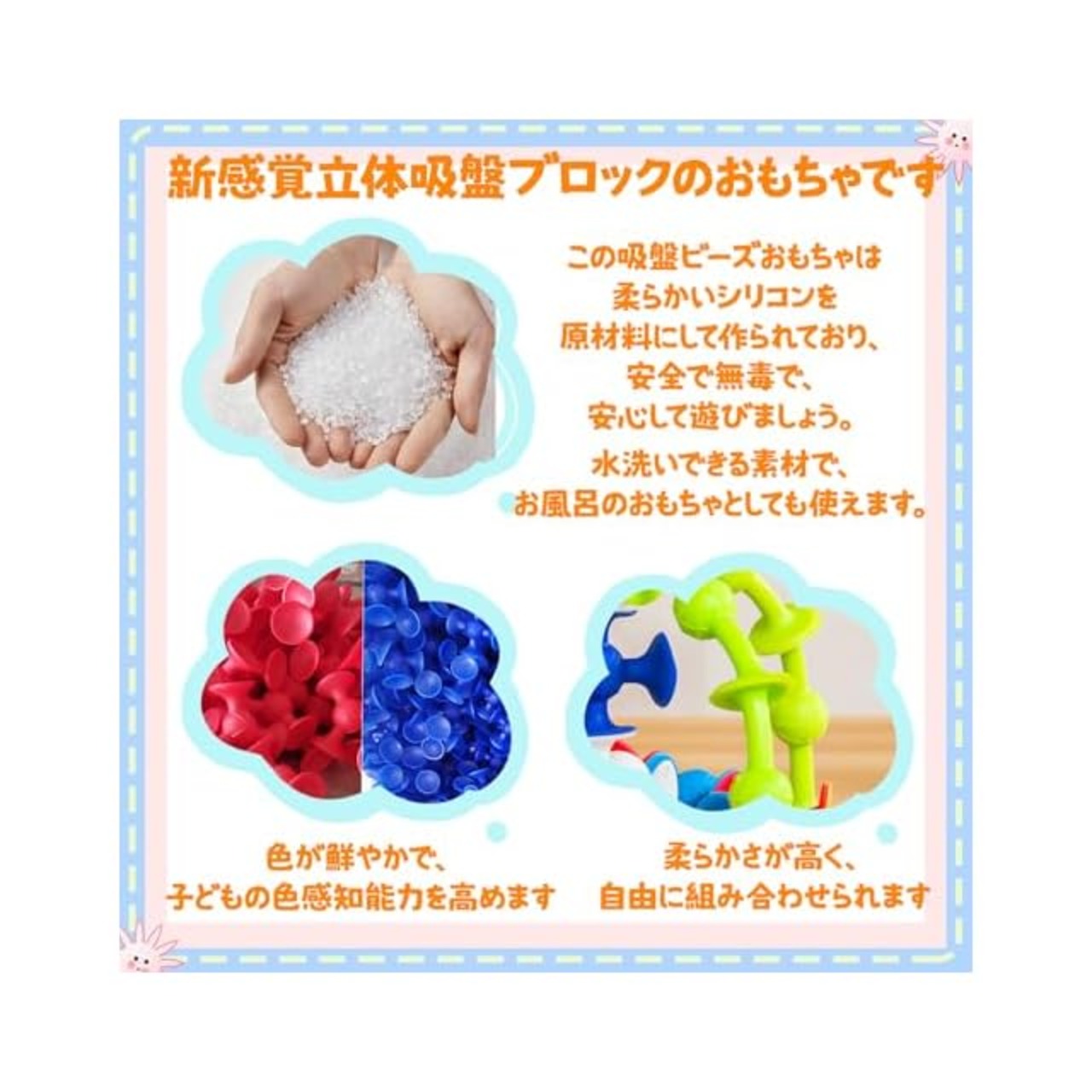 【吸盤ビーズおもちゃ】新感覚立体吸盤ブロックのおもちゃです。吸盤ブロックは従来の硬いブロックとは異なり、より柔らかく、吸着力が強く、押し倒されにくい。押したり引き抜いたりする動作で、子どもの握力を鍛えることができます。