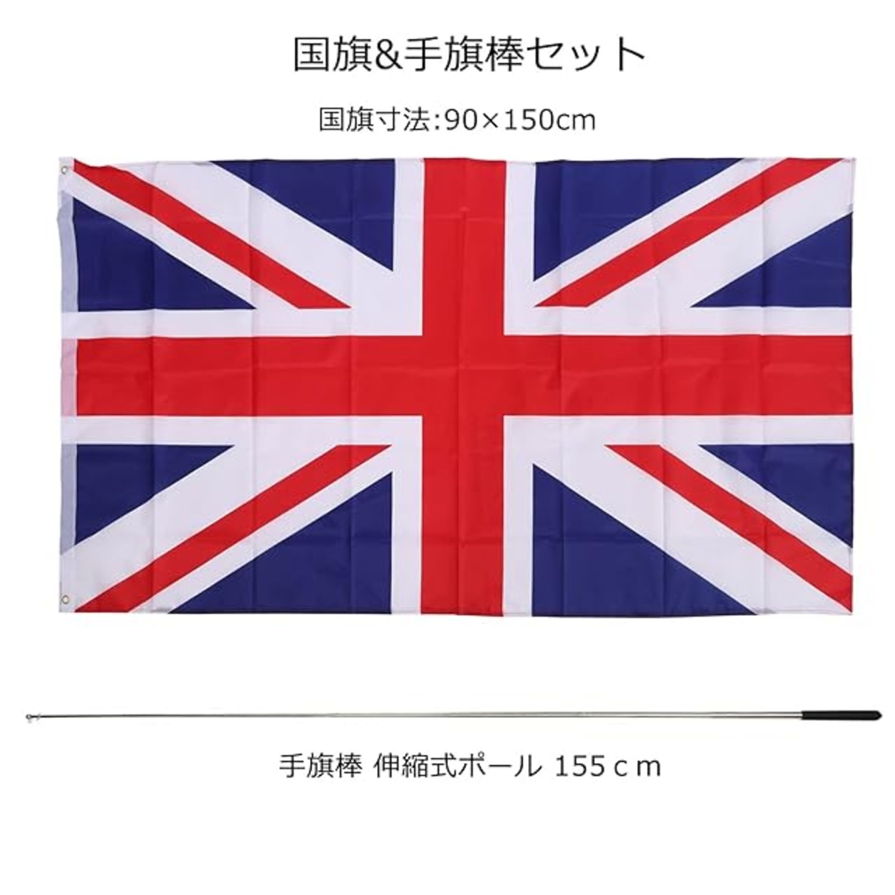 Difounmas 国旗セット イギリス国旗 旗棒 伸縮式 フラッグサイズ 90×150cm 伸縮旗ポール 手旗棒 155cm 国際交流 フェスティバル イベント サッカー 体育 競技 代表応援用 文化祭 装飾 パーティ運動会用