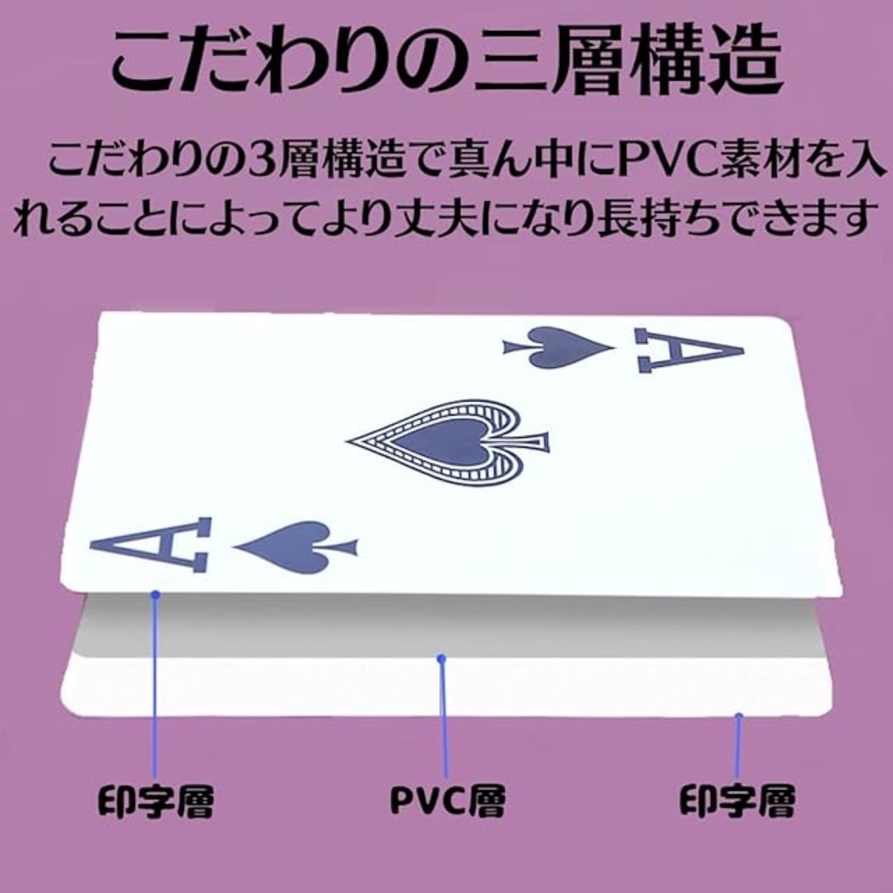 【優れた耐久性】GlowTactのトランプは、長時間使用しても折れにくく、破れにくい特性があります。特に3層構造で中間に高品質PVC素材を使用することで、さらなる強度と耐久性を実現し、長くご使用いただけます。