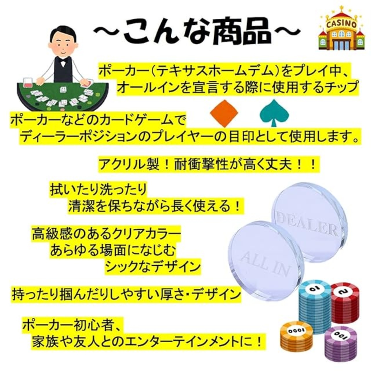ST TS ディーラーボタン オールインボタン 2点セット ポーカーゲーム ポーカー ディーラー クリア ボタン