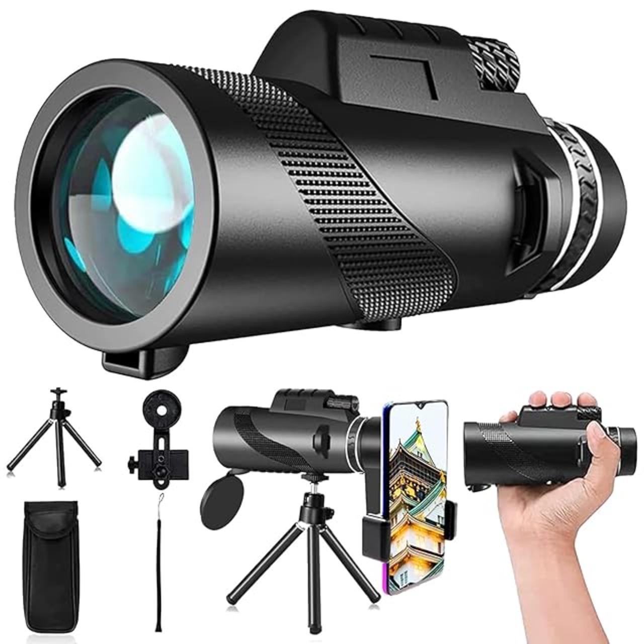 XINKSD 80x100 単眼望遠鏡 望遠鏡 スマートフォン対応三脚付き 防水霧 BAK4プリズムを搭載 FMCレンズ 簡単装着 高倍率 単眼鏡 運動会、バードウォッチング、コンサート ラ イブ -A