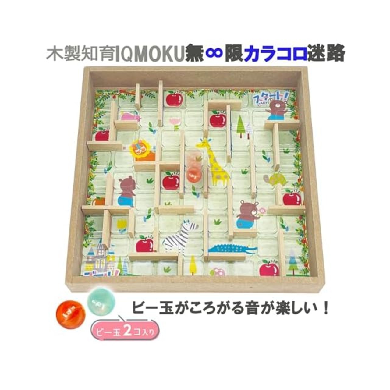型枠に迷路シートとグリッドベースを敷き、迷路パーツをはめこんでオリジナル迷路を完成!ビー玉をカラコロ転がしてゴールへ向かおう!オリジナルルールを作って自分なりの迷路を作ってみんなで遊ぼう!ビー玉と木製パーツが当たるとカラコロ音が鳴り心地よい音です!大人も遊べば、懐かしさを感じて幼少期へタイムスリップ!
