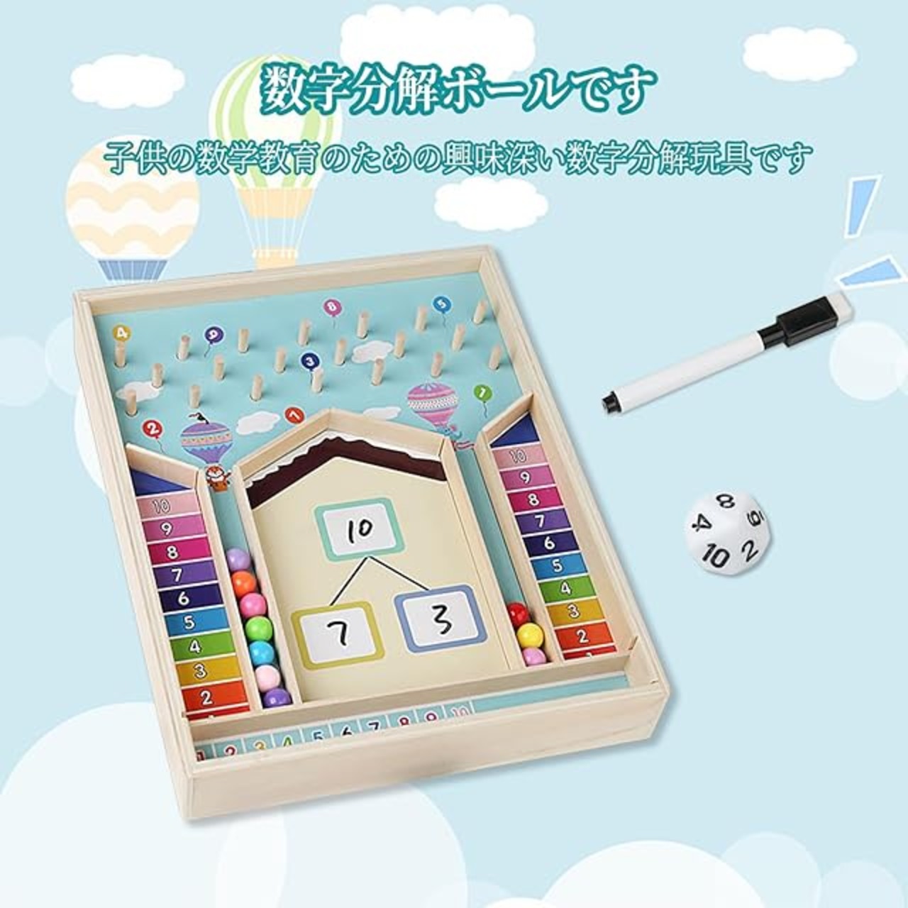 1. 包括的なデジタル啓発セット: chuxinmy デジタル分解ローリングボールおもちゃ (下のボックス、カラフルなビーズ 10 個、水性ペン 1 個、サイコロ 1 個を含む)。生後36か月以上のお子様が10以内の数値の合成と分解を学ぶのに最適なツールです。楽しいゲームを通じて、子供たちは手と目の協調運動をしながら、数字の構造と関係を直感的に理解することができます。