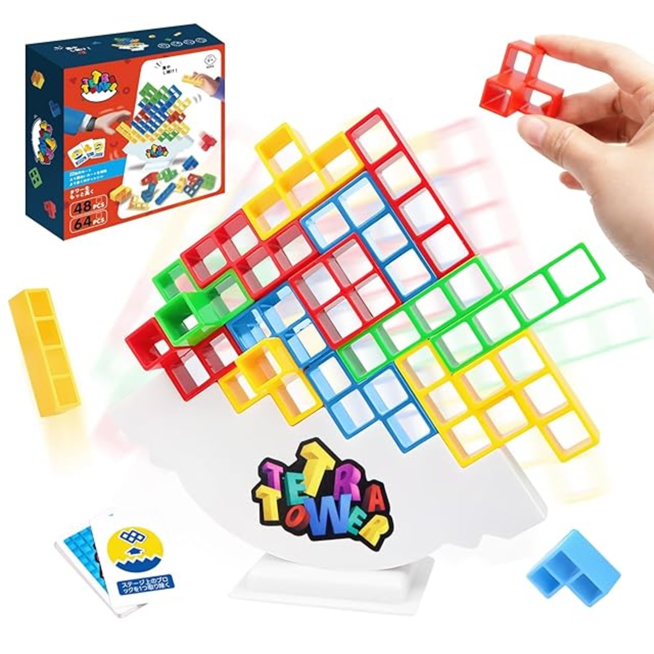 おもちゃ バランスゲーム 立体ブロック パーティーゲーム 家族で遊べるゲーム 図形キューブつみき 対戦ゲーム 日本語説明書付き 収納袋付き 64PCS