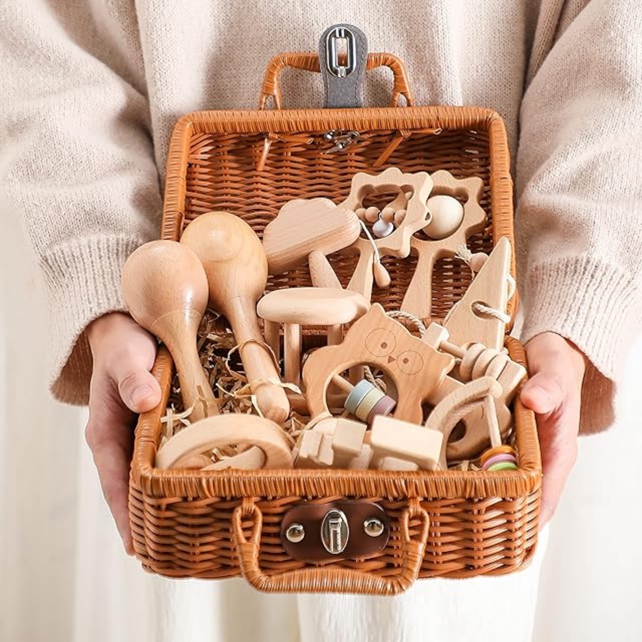 【人気の出産祝いセット】貰って嬉しい厳選したラトル12点を箱に入れることにより、おしゃれで可愛いベビーギフトセットとなっております。箱の上にハンドルあるので持ち運びも便利です。出産祝い、誕生日プレゼント、クリスマスプレゼントプレゼントなど様々なシーンにご利用いただけます。