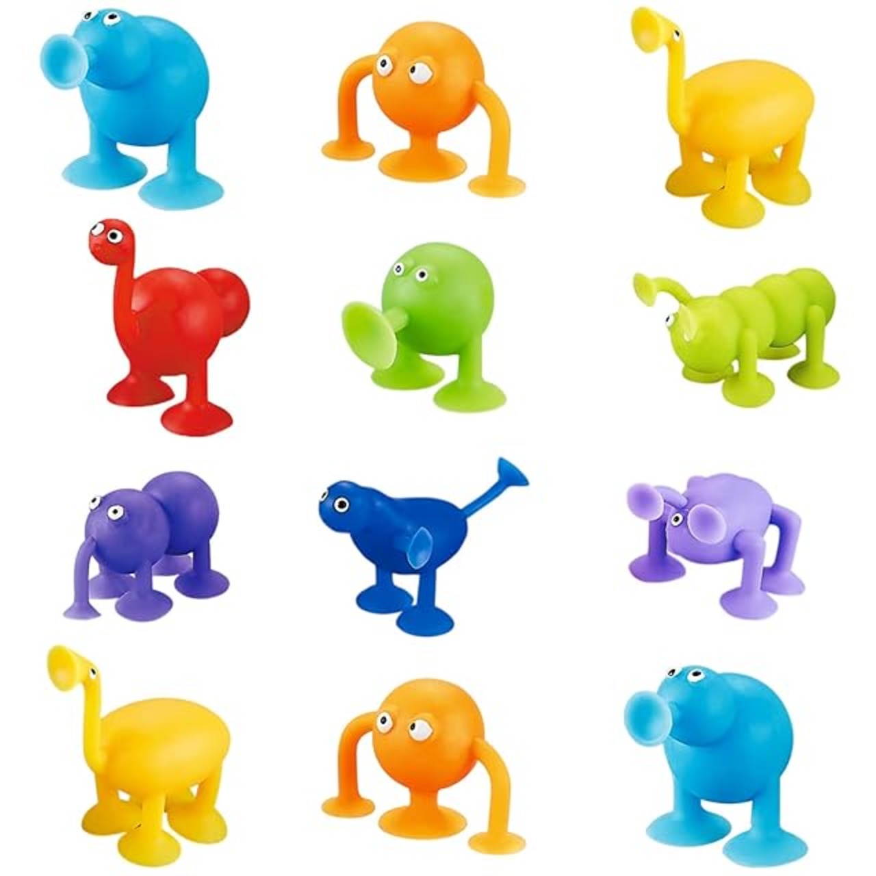 HUAZONTOM 吸盤 おもちゃ お風呂 知育玩具 2歳 スクイーズ 積み木 組み立て ブロック 12個セット シリコン 動物モチーフ おもしろグッズ DIY 男の子 誕生日プレゼント 女の子 3歳 壁にも使える