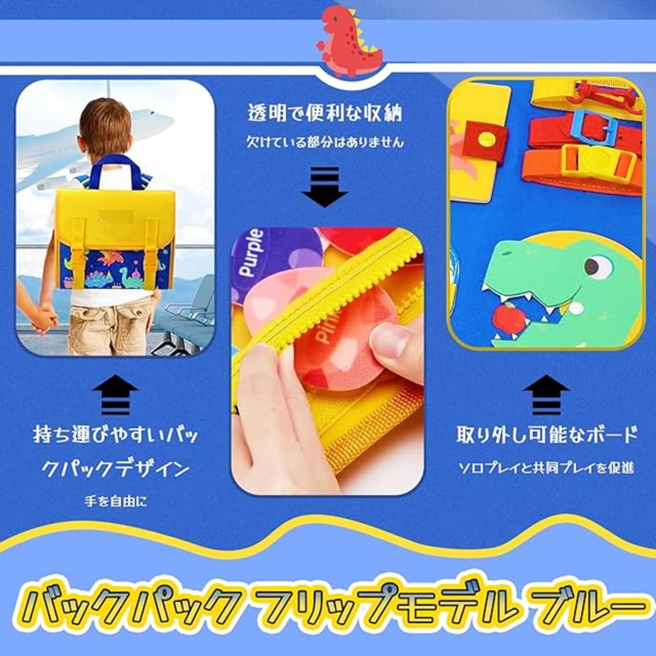 HIWO モンテッソーリ 恐竜バックパックおもちゃ 18IN1 ビジーボード 1-6歳 知育玩具 指先訓練 お着替え練習 生活スキル カラフルデザイン 親子遊び 感覚教具 持ち運び便利 誕生日 クリスマス ギフト 安全認証