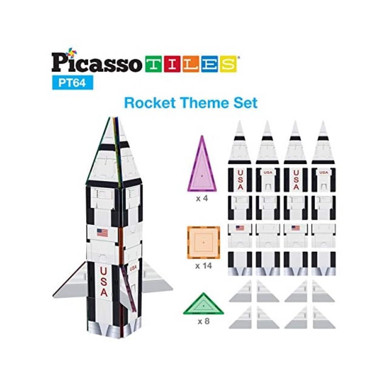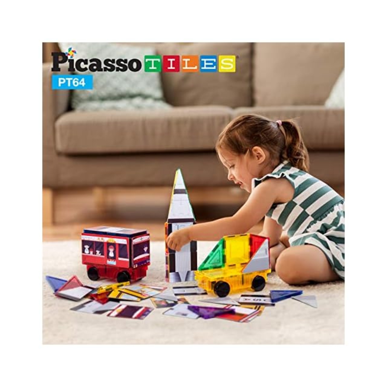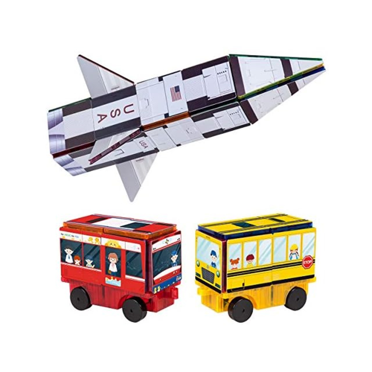 PicassoTiles マグネット組み立てブロック 乗り物セット ロケット スクールバス 電車 初期教育 STEM教育 3in1 くっつく パズル ごっこ遊び マグネットタイル キッズ 積み木 おもちゃ マルチカラー