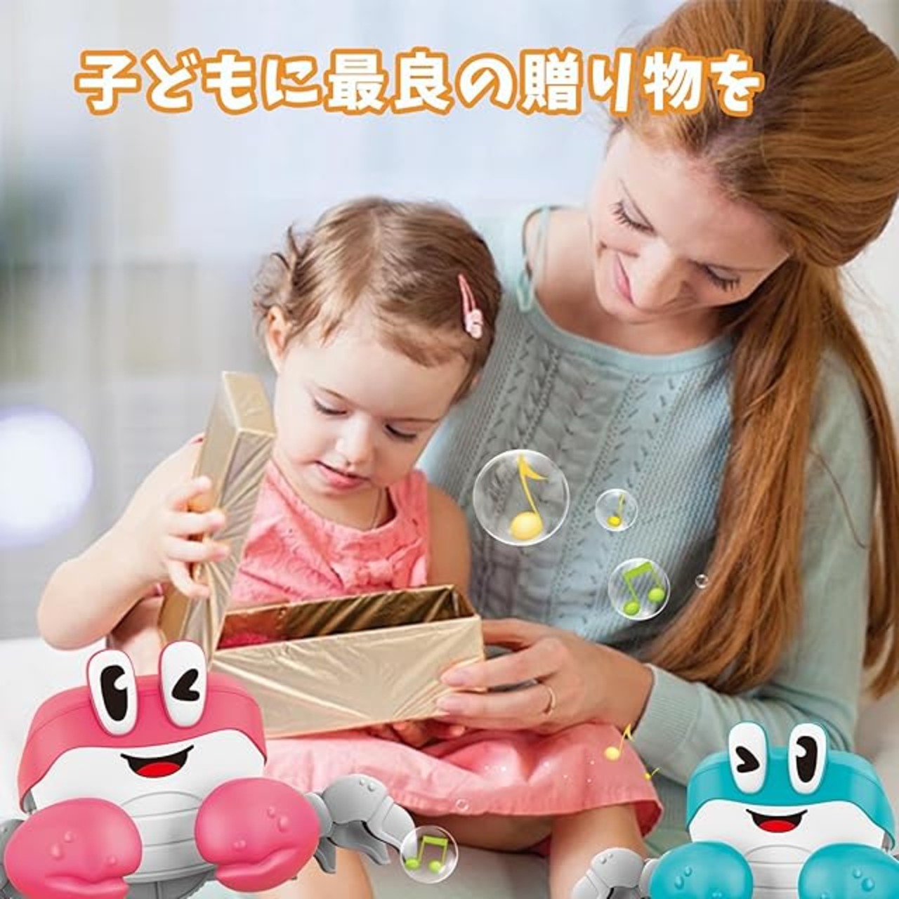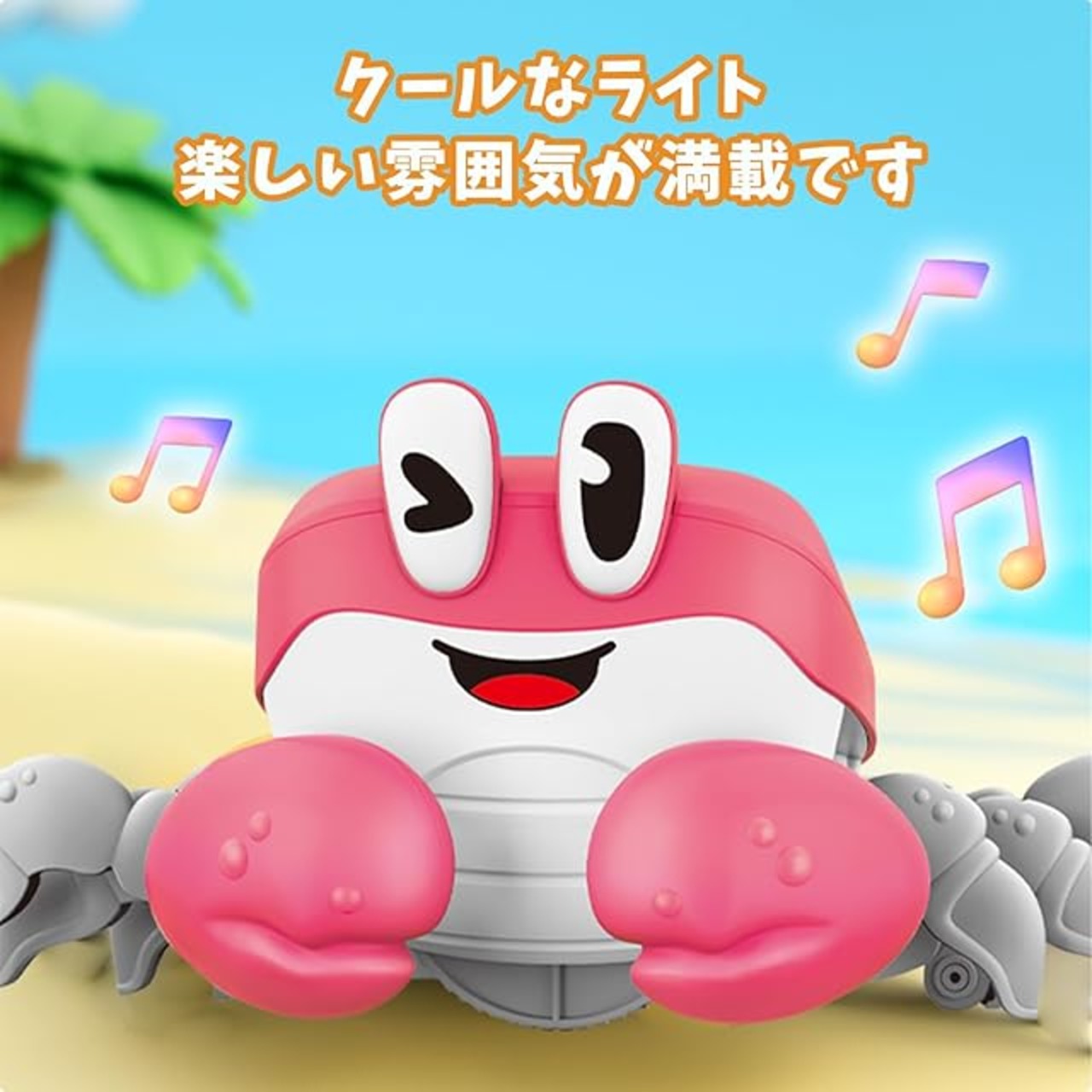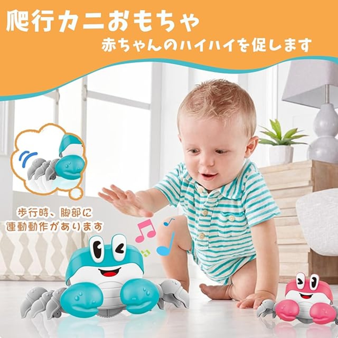 【インタラクティブなカニおもちゃ】これは楽しくてインタラクティブなカニハイハイおもちゃで、0歳 1歳 2歳の赤ちゃんがハイハイ能力を鍛えるのに適しています。小さなカニは、動くときに音楽と点滅するライトが伴い、赤ちゃんの注意を引きます!