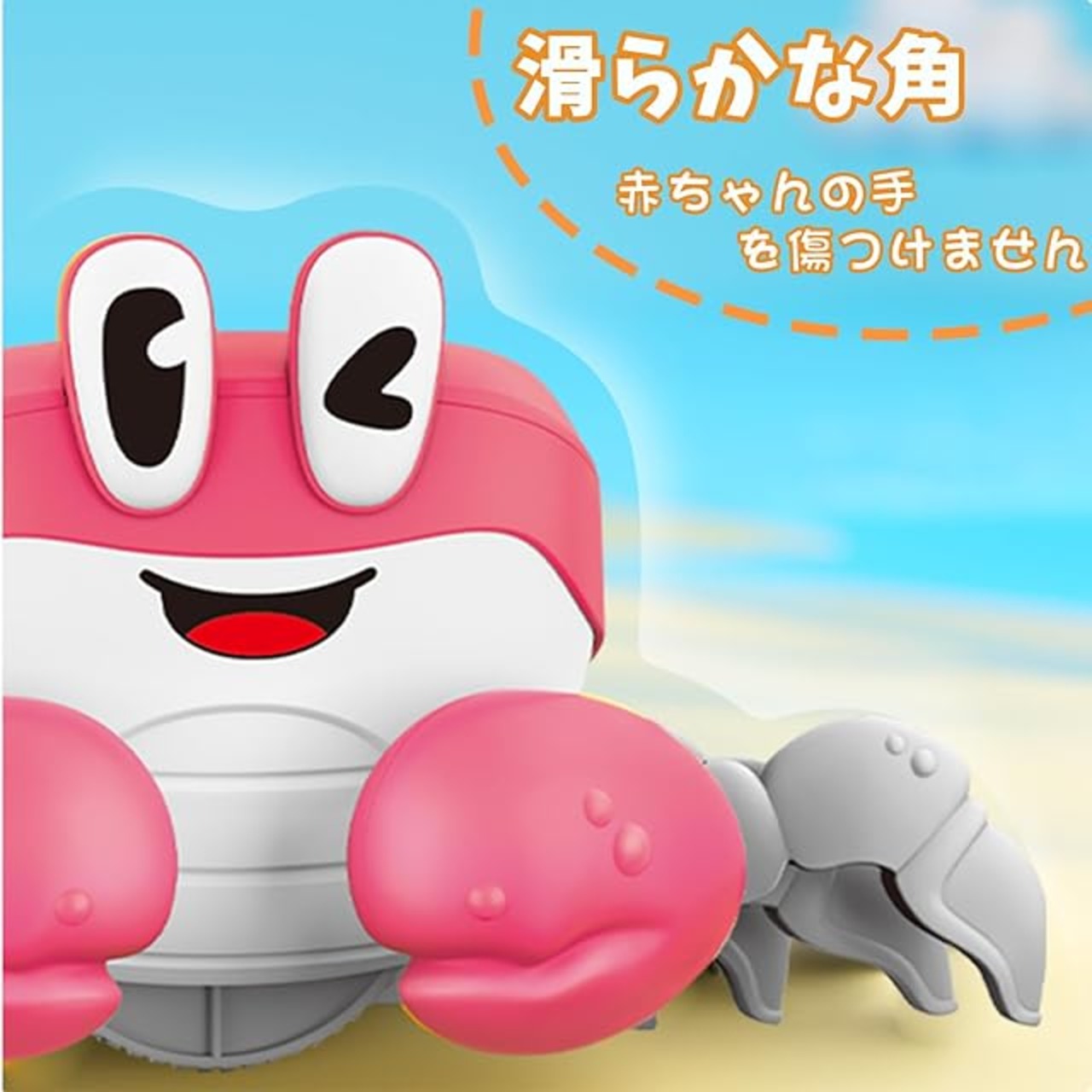 【かわいい繰り返し横移動】カニおもちゃは特定の範囲内で繰り返し横に移動するように設計されており、センサー式のタイプと比べて隙間に挟まるリスクを効果的に減少させ、赤ちゃんの遊びを安全にします。子供たちは安心して追いかけ、楽しむことができます。