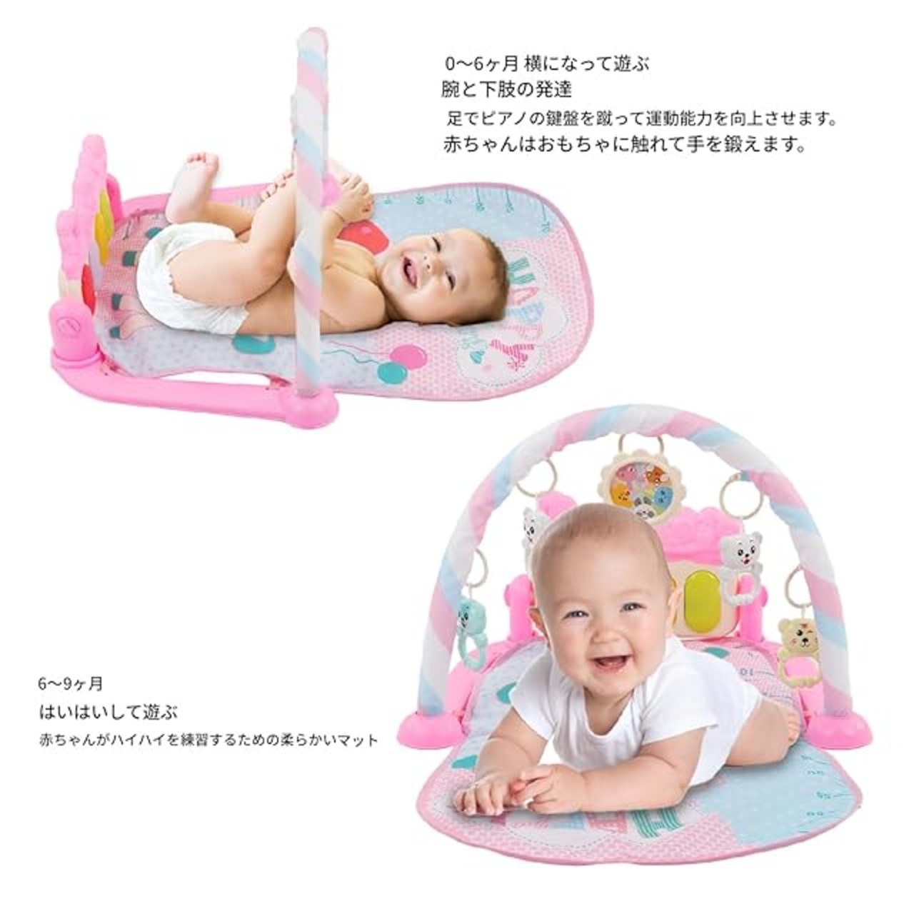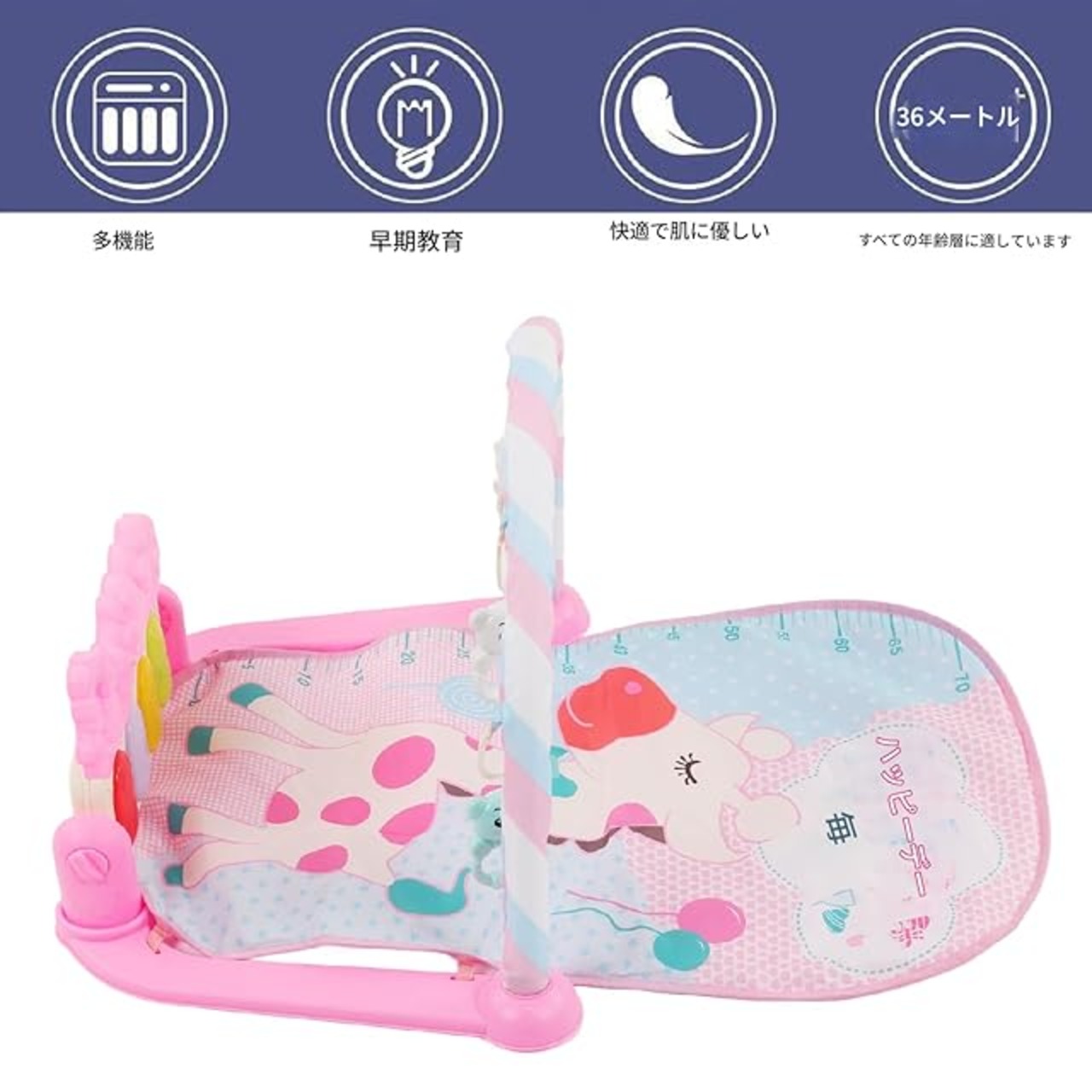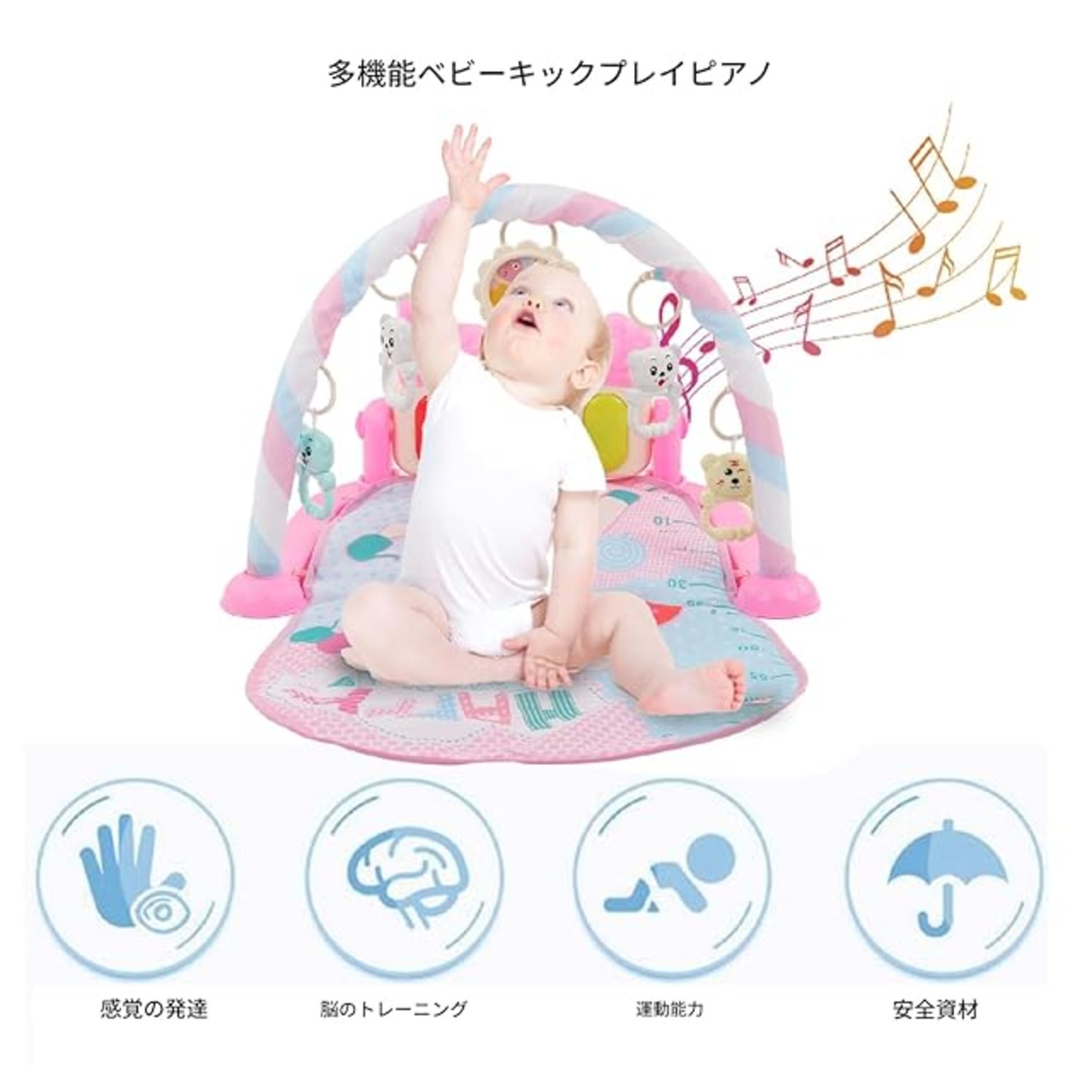 【多用途】キックピアノや音楽のおもちゃで、幼児に良い聴覚訓練を提供し、協調運動の能力を行使することができます。明るく豊かな色彩は、赤ちゃんの視力や好奇心を刺激し、色彩認識能力を促進し、乳幼児の身体的・精神的発達を向上させるのに最適です。