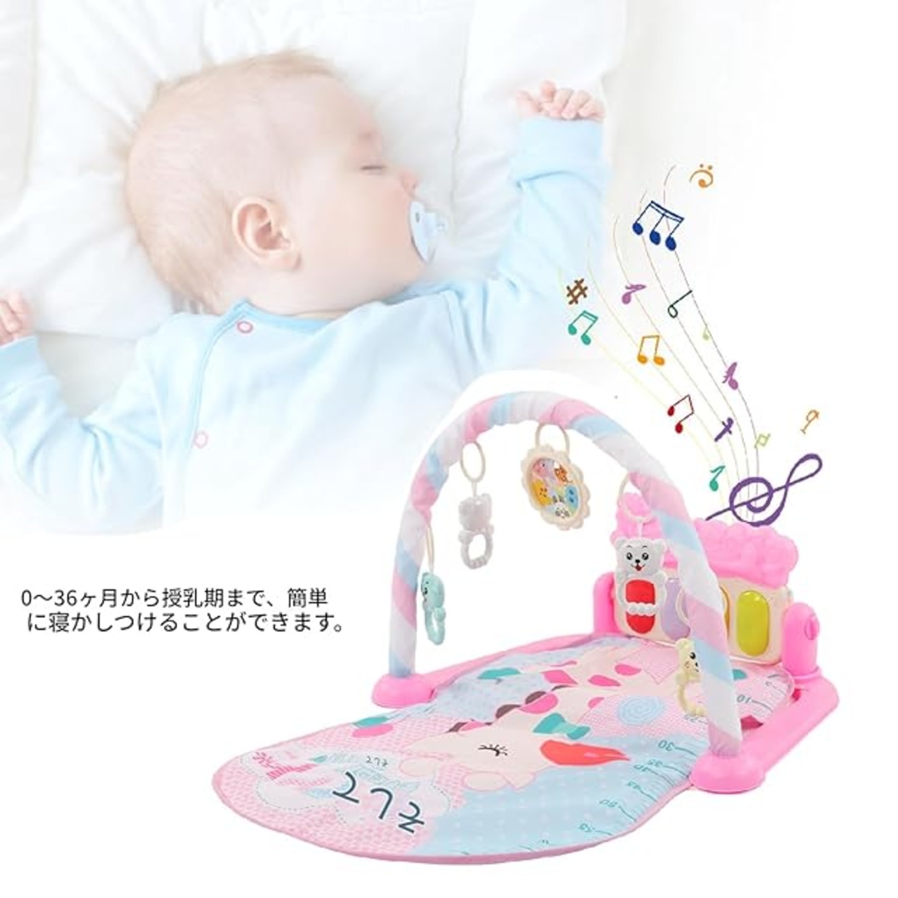 【柔らかい音楽】ベビープレイピアノジムマットは、赤ちゃんを落ち着かせ、リラックスさせ、より速く甘い睡眠を促進するのに役立つ優しい歌と柔らかいライトを備えています。