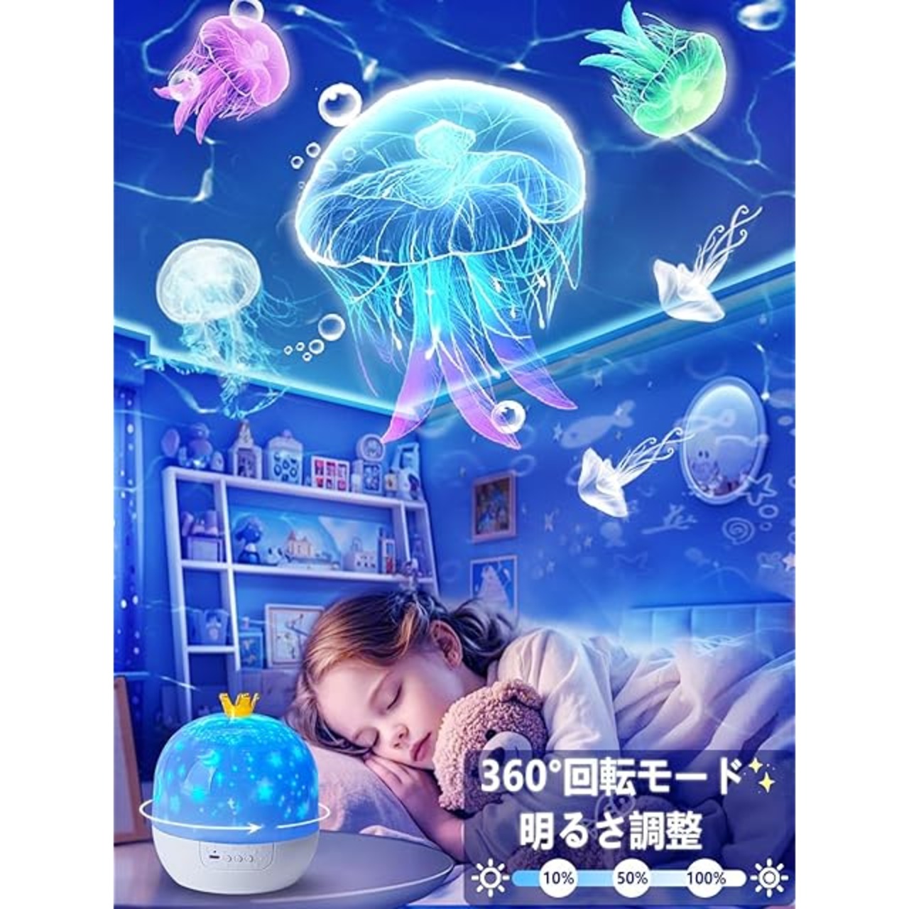 【おうち用 夢いっぱいライト】 王冠みたいなドーム型デザインがかわいい!専用カバーを外すとお部屋中がプラネタリウムに大変身。天井いっぱいのキラキラ星空に大興奮!カバー付ければふんわり明るさ調整できるお夜様ライト。21種類の楽しいディスク(海の生き物/おとぎ話/季節のイベント)で毎日お部屋がディズニーランドみたい!くるくる回る台座と7色に変わるライトで、子供の創造力がどんどん育ちます。