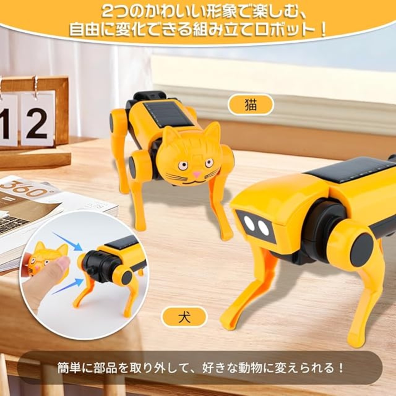 【自由にカスタマイズ可能な交換用頭部】本製品には、猫や犬などの交換可能な頭部が付属しており、お子様の好みに応じて自由にカスタマイズが可能です。これにより、ロボット犬はさらに愛着のある存在となり、子供たちの想像力を一層刺激します。