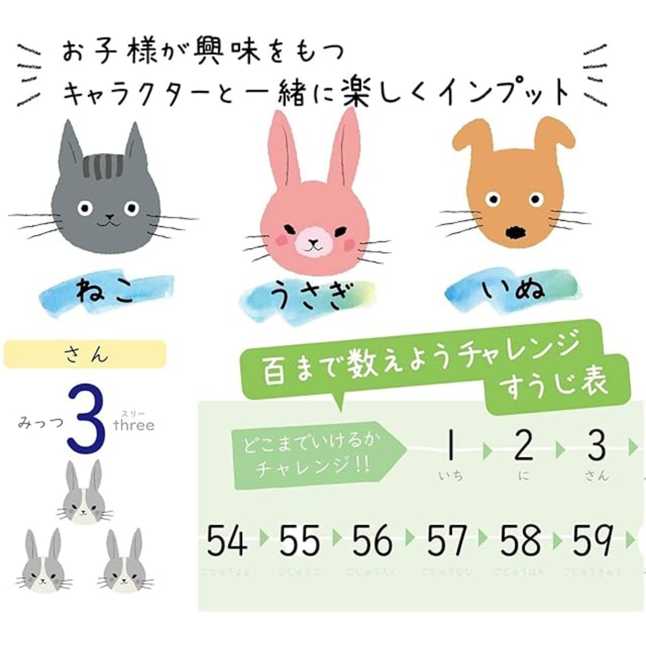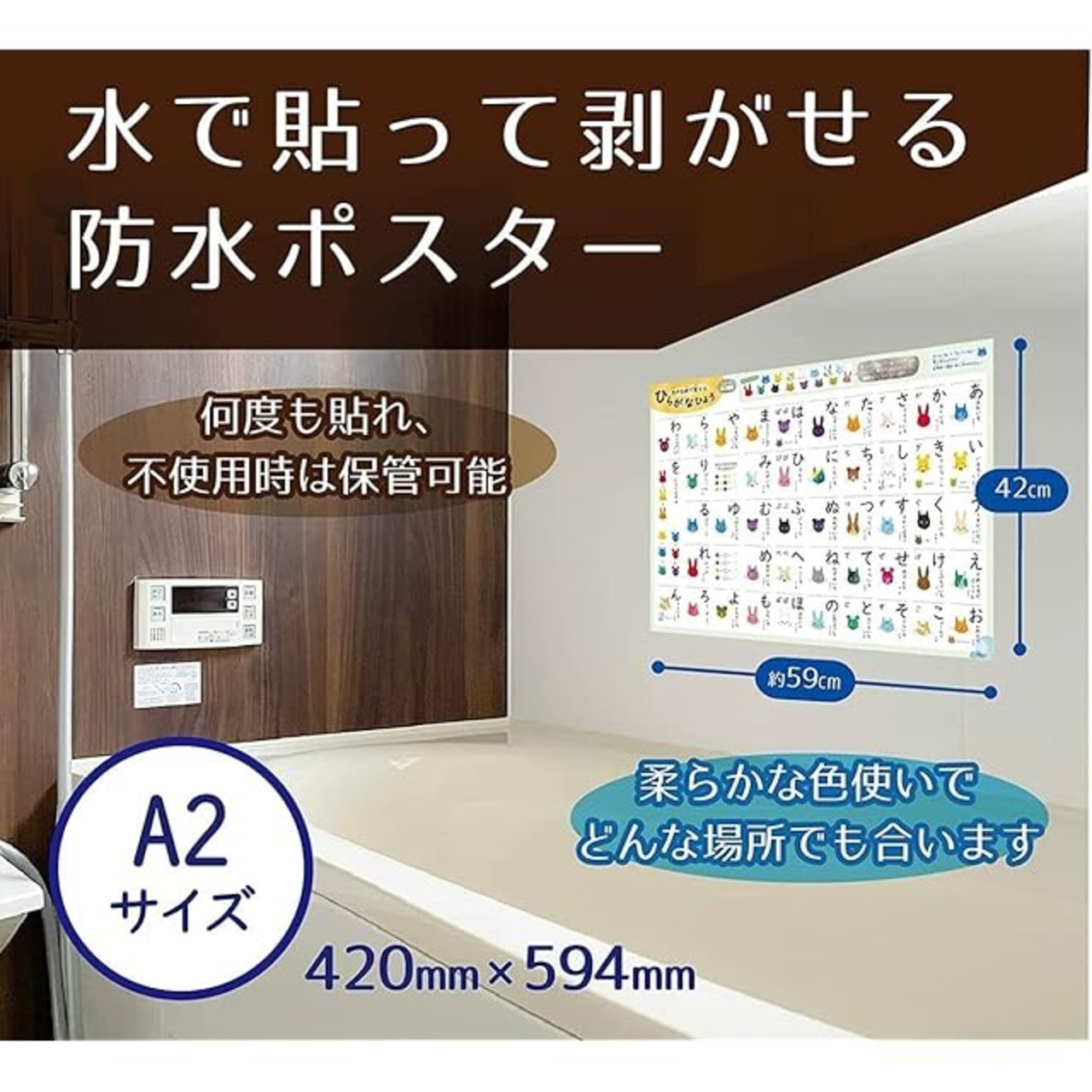 あいうえお表 すうじ表セット お風呂ポスター いぬ ねこ うさぎデザイン A2 (60×42cm) ノートライフ 日本製 防水 (すうじ 、 ひらがな)