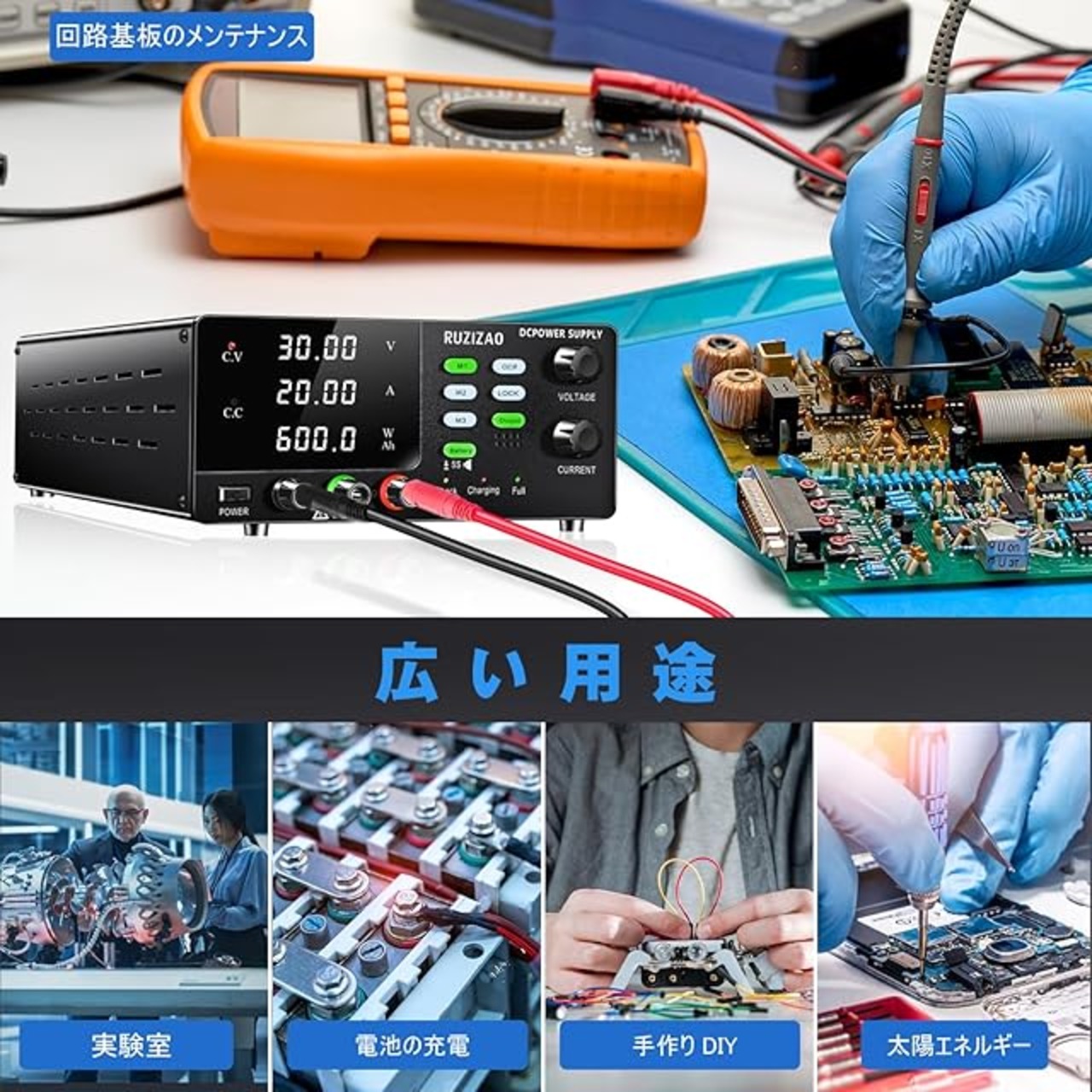 RUZIZAO 安定化電源 60V 20A 1200W 大電力 可変直流安定化電源 4桁電圧電流電力表示 エンコーダ付き ボタン 6V 12V 24V 36V 48V 60V 電池充電用 スイッチング電源 DC 電気制御機器 実験室用 直流実験室電源 テープ記憶機能 サウンド OCP機能 日本語説明書付き