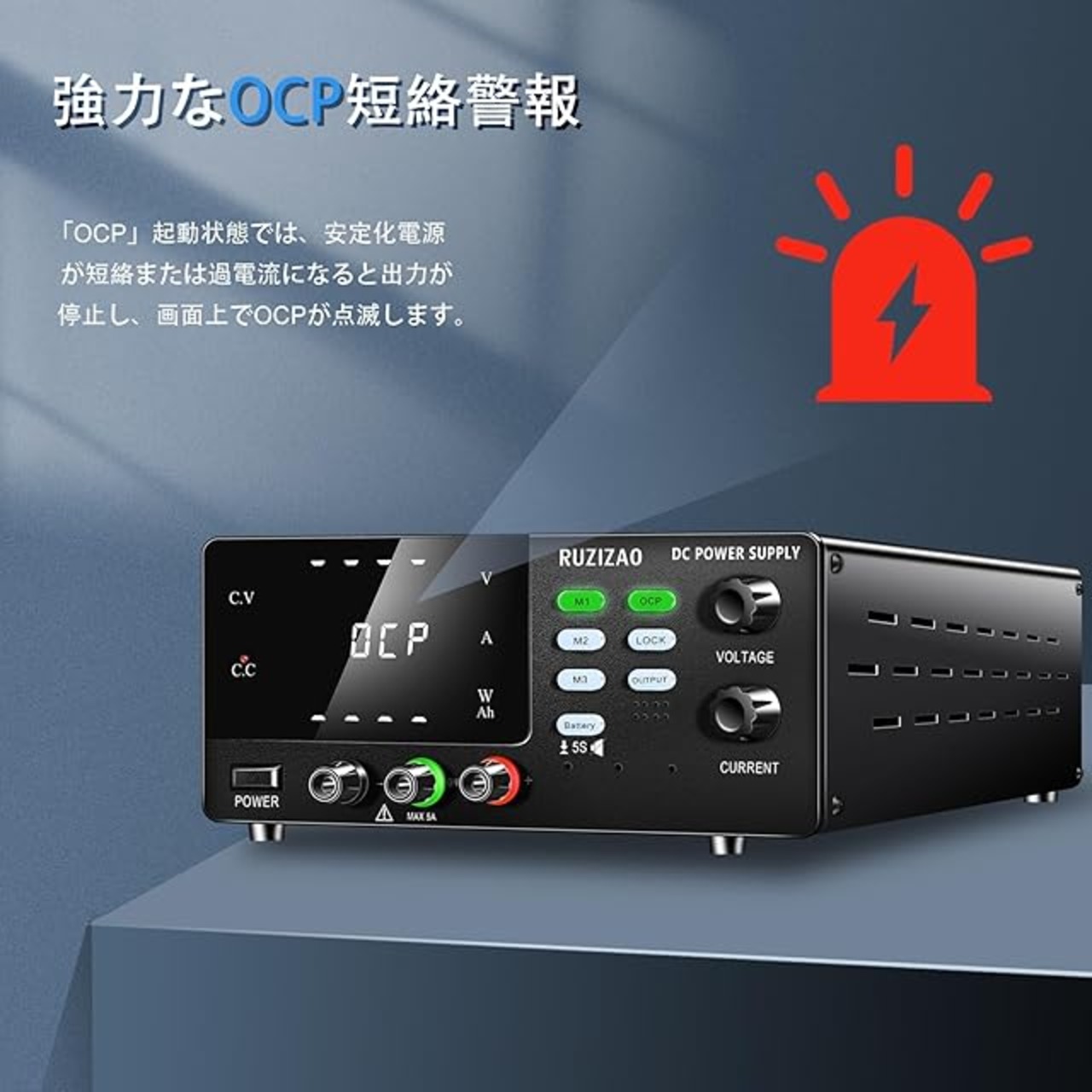 【OCP機能の新規更新】:安定化電源はOCP機能を改良し、「OCP」ボタンを追加した。「OCP」ボタンを押しながら実験室の電源を使用すると、短絡したときLED画面が自動的にOCPに切り替わり、電源出力を停止し、さらに実験室の電源を保護し、より安全なユーザー体験を提供します!