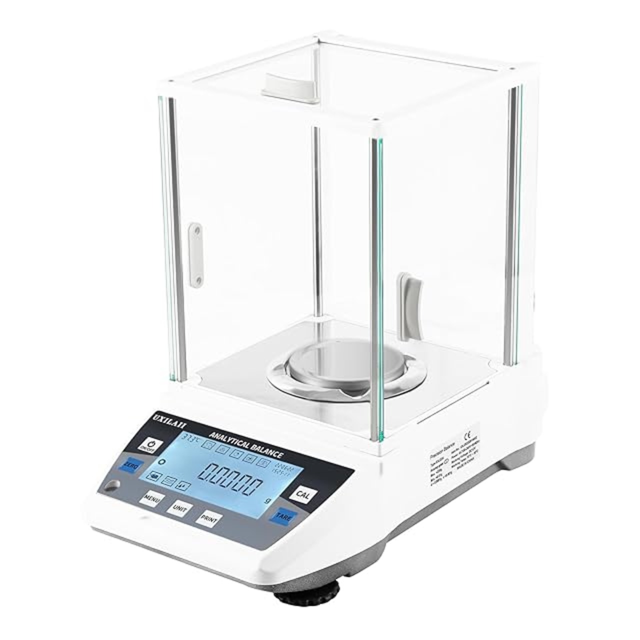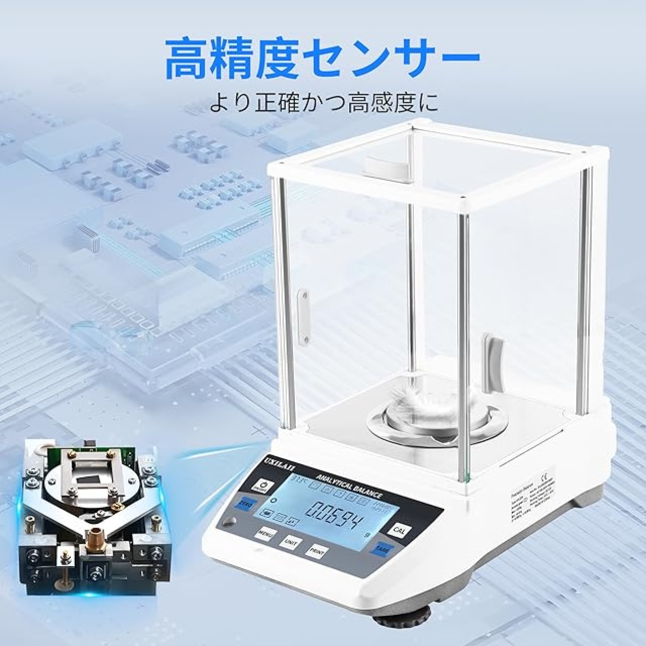 UXILAII分析天秤220g 0.1mg GN mgユニット実験室用精密天びん0.0001gデジタル分析スケールRS232インターフェースラボ電子バランスLCDディスプレイガラスフロントガラス付き 校正分銅付き