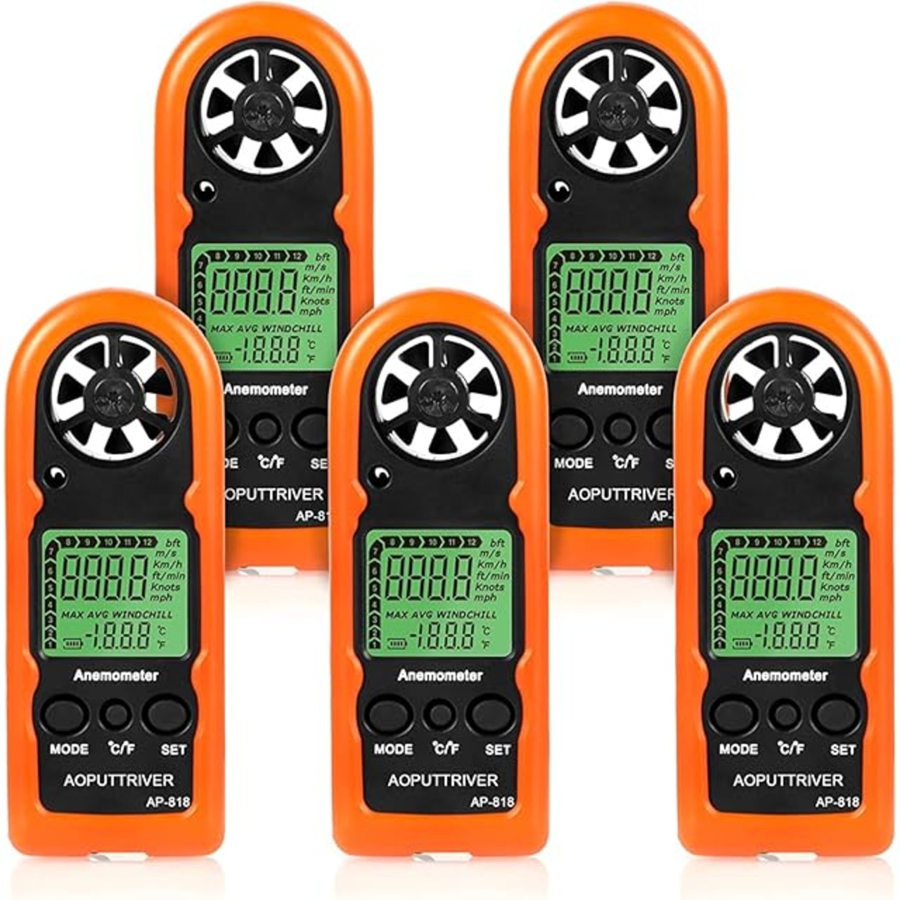 5パック 風速計 ハンドヘルド AP-816B 風速計 保護シェル付き 風速温度と最大/平均/電流を測定 ウィンドサーフィン セーリング 釣り用 ミニ風速計 オレンジ