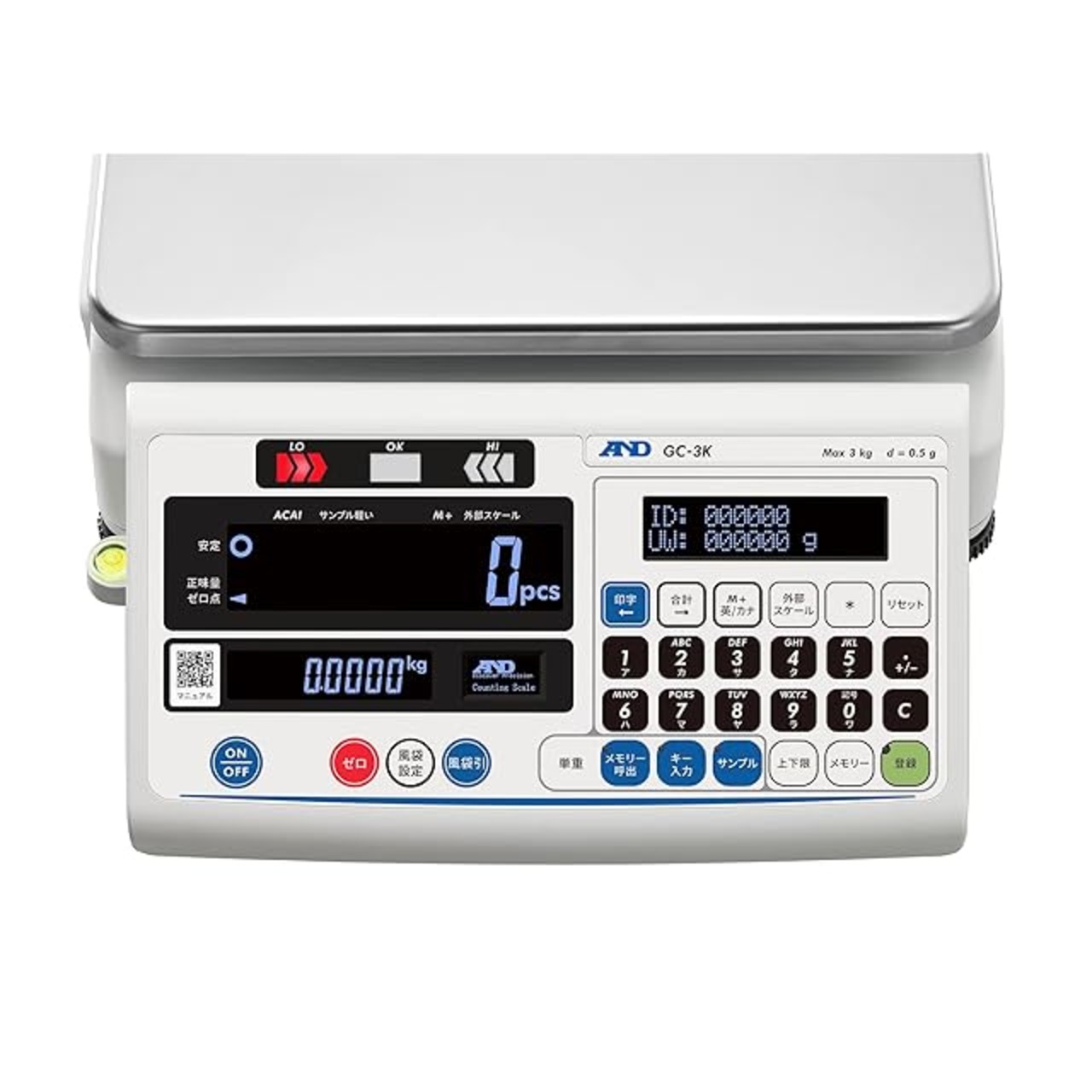 A&D 個数計 GC-6K ≪ひょう量:6kg 最小表示:1g(計量可能最小単重:0.2/0.01g) 皿寸法:300(W)*210(D)mm 検定無≫ ※計量法準拠製品