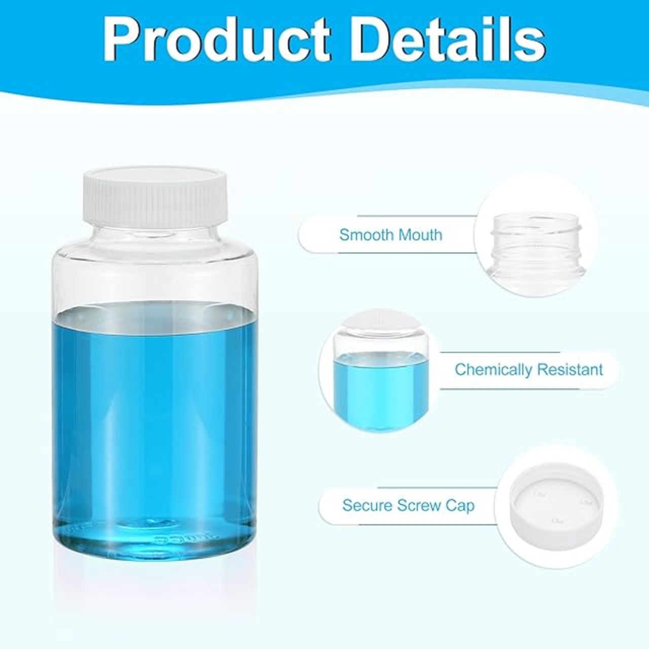 PATIKIL 20個入り 300ml しやくボトル PETワイドマウスラウンドボトル ネジキャップ付き 実験室用水しやく 液体 固体サンプル 保管 シール 透明