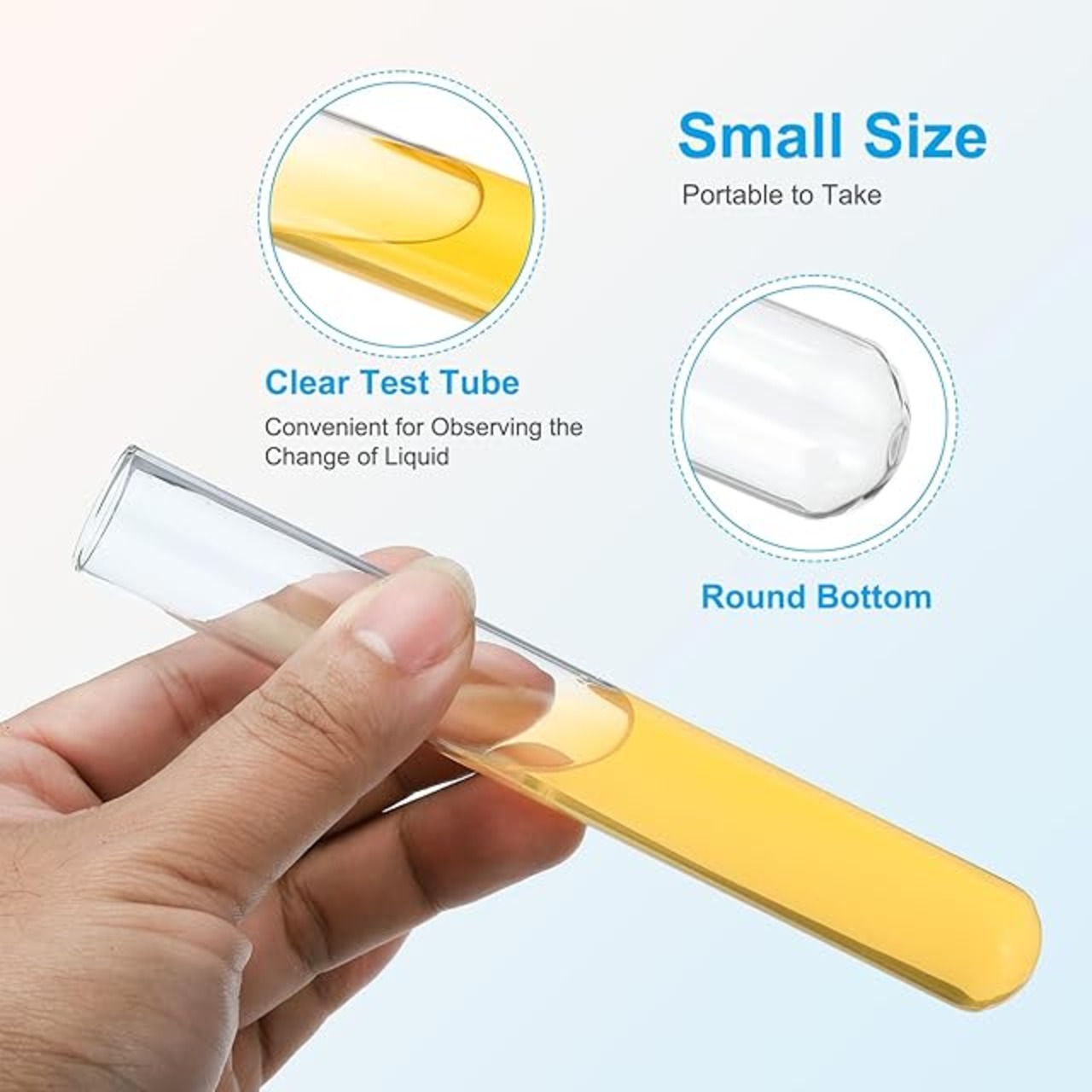 特徴:1. 試験管はホウケイ酸ガラス製で、耐熱性があり物理学や科学実験に使用できます。使用後は洗浄して再利用できます。2. 試験管は透明な外観で、植物や液体の変化を観察するのに便利です。3. サイズが小さく、持ち運びに便利です。